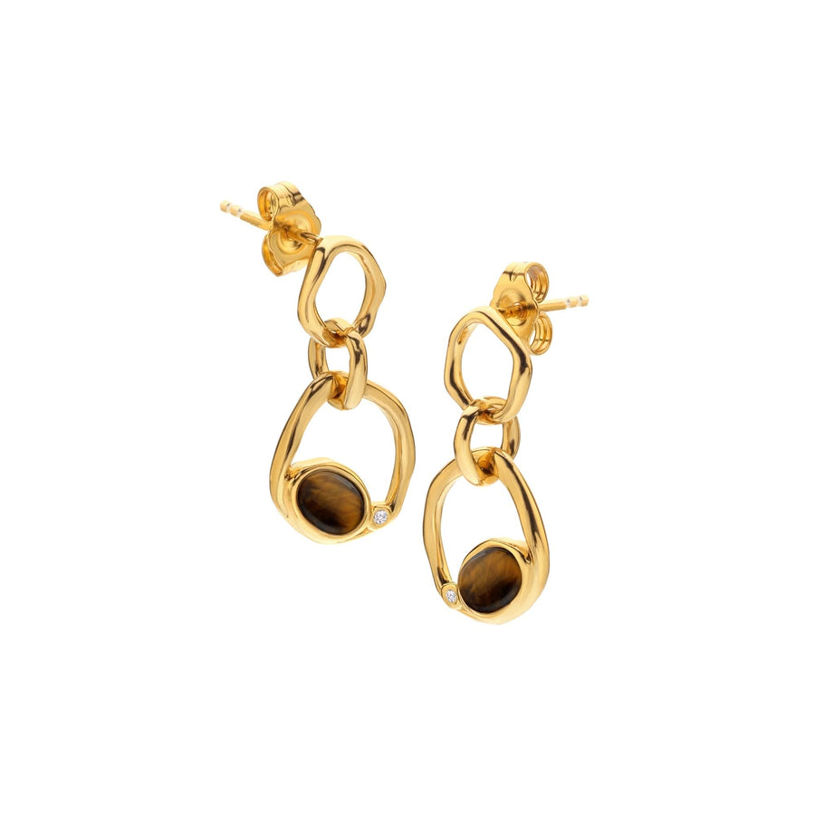 18ct Gold HDXGEM Offset Tigers Eye Earrings DE816