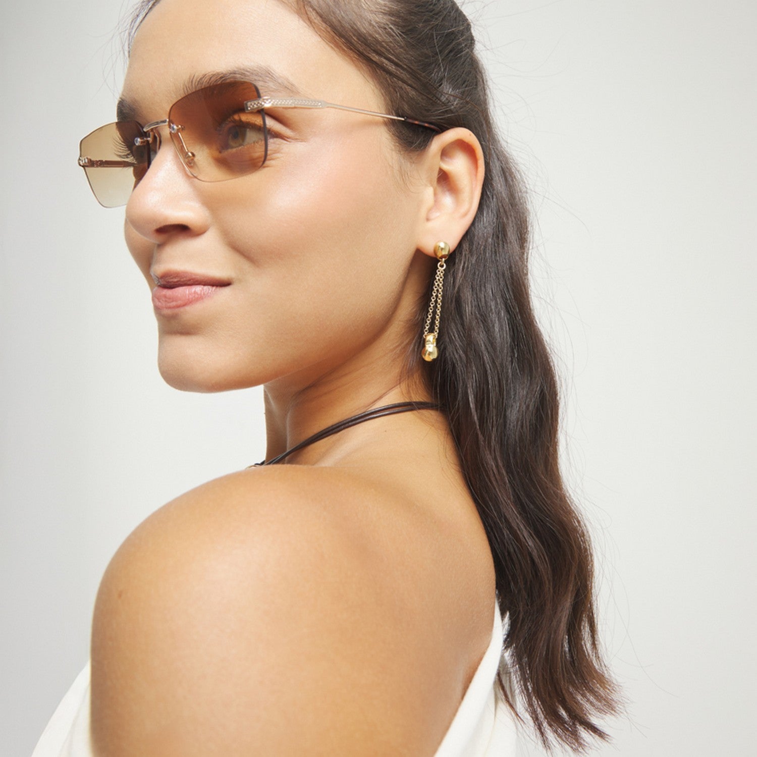 - 1 x 18K Gold Metal Alloy Long Chain And Ball Detail Earrings PEN1063ORO000