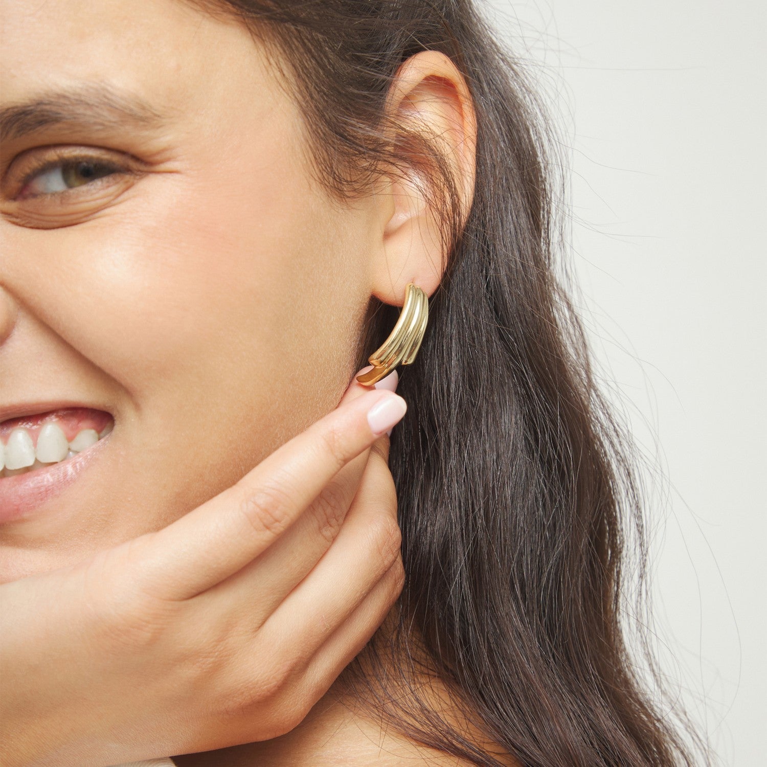 18K Gold Plated Elongated Organic Shapes Earrings PEN1071ORO000