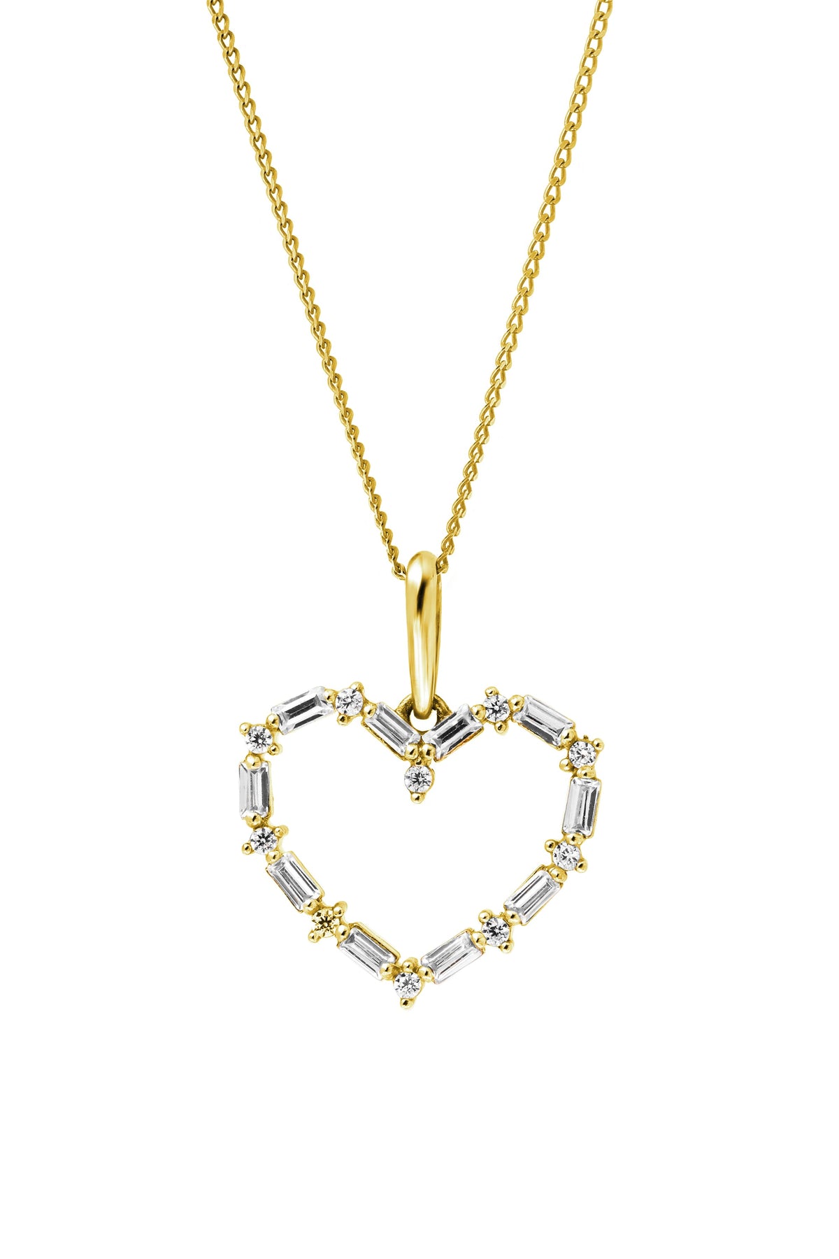 Show your love by gifting someone this pretty heart-shaped pendant. Beautifully set with sparkling round and emerald cut zirconia stones it is suspended from a 9carat gold 18 Inch curb chain. A wonderful and memorable idea, no matter what the occasion. Presented in beautiful packaging.