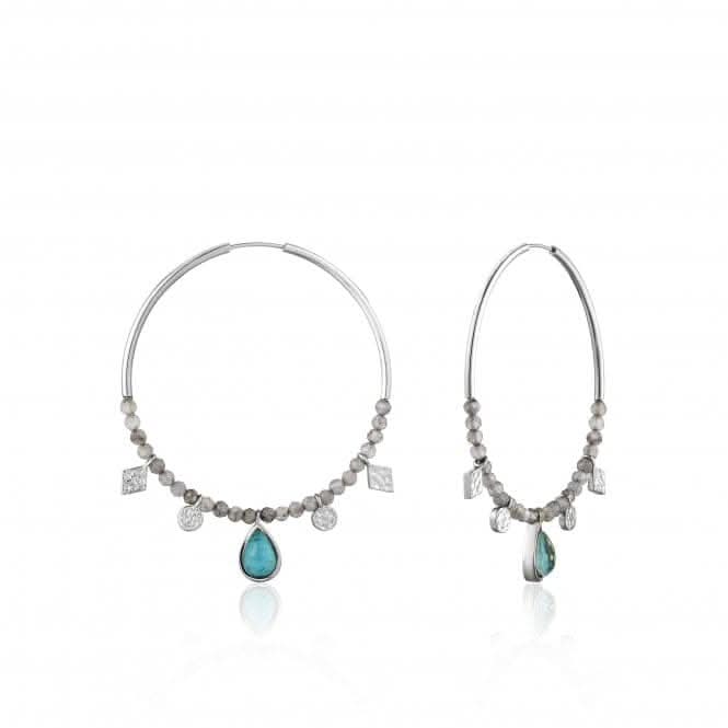 Ania Haie Silver Rhodium Plated Turquoise Labradorite Hoop Earrings E014-05H