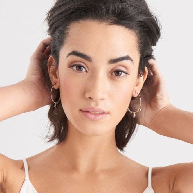 Our Turquoise Labradorite Silver Hoop Earrings are also available in gold.