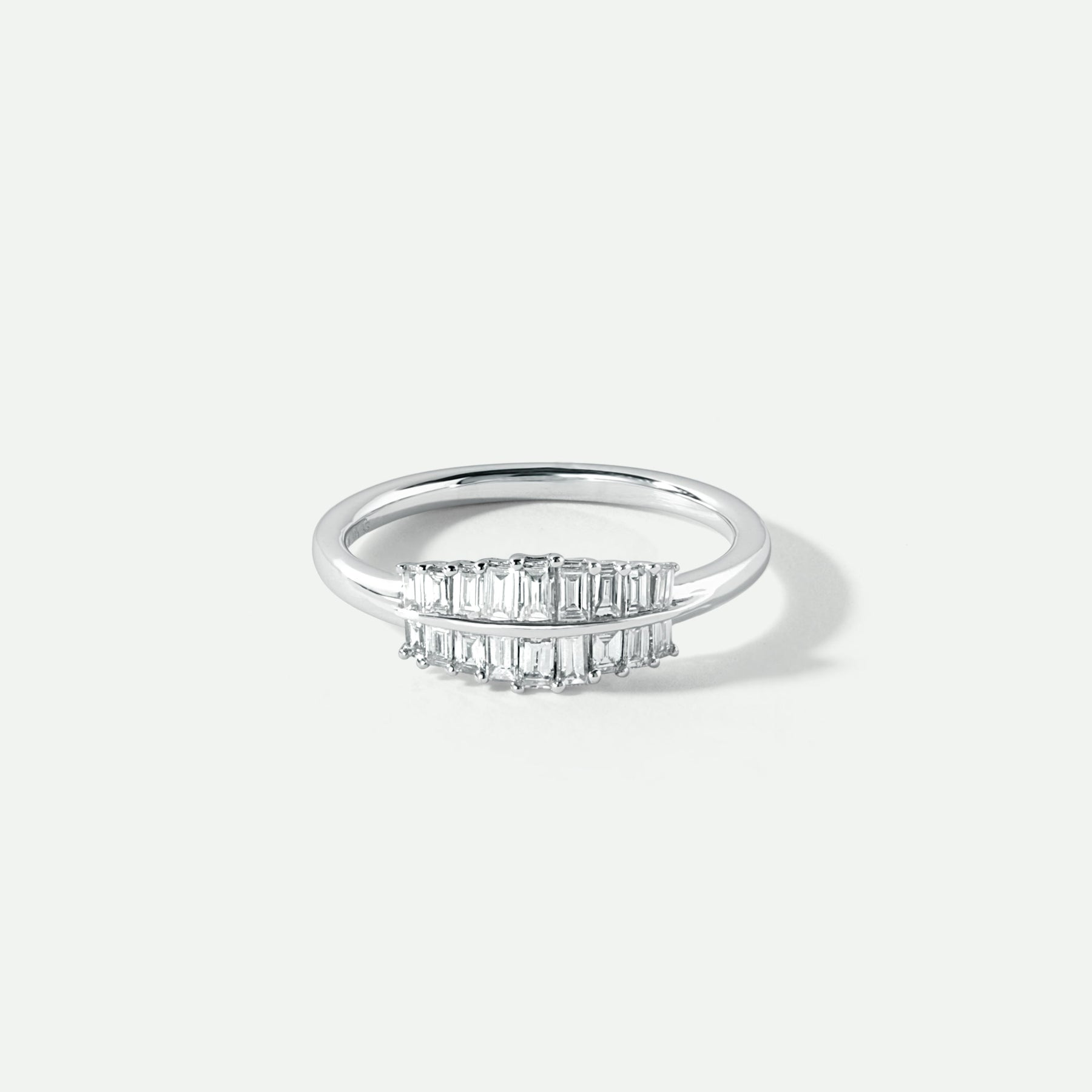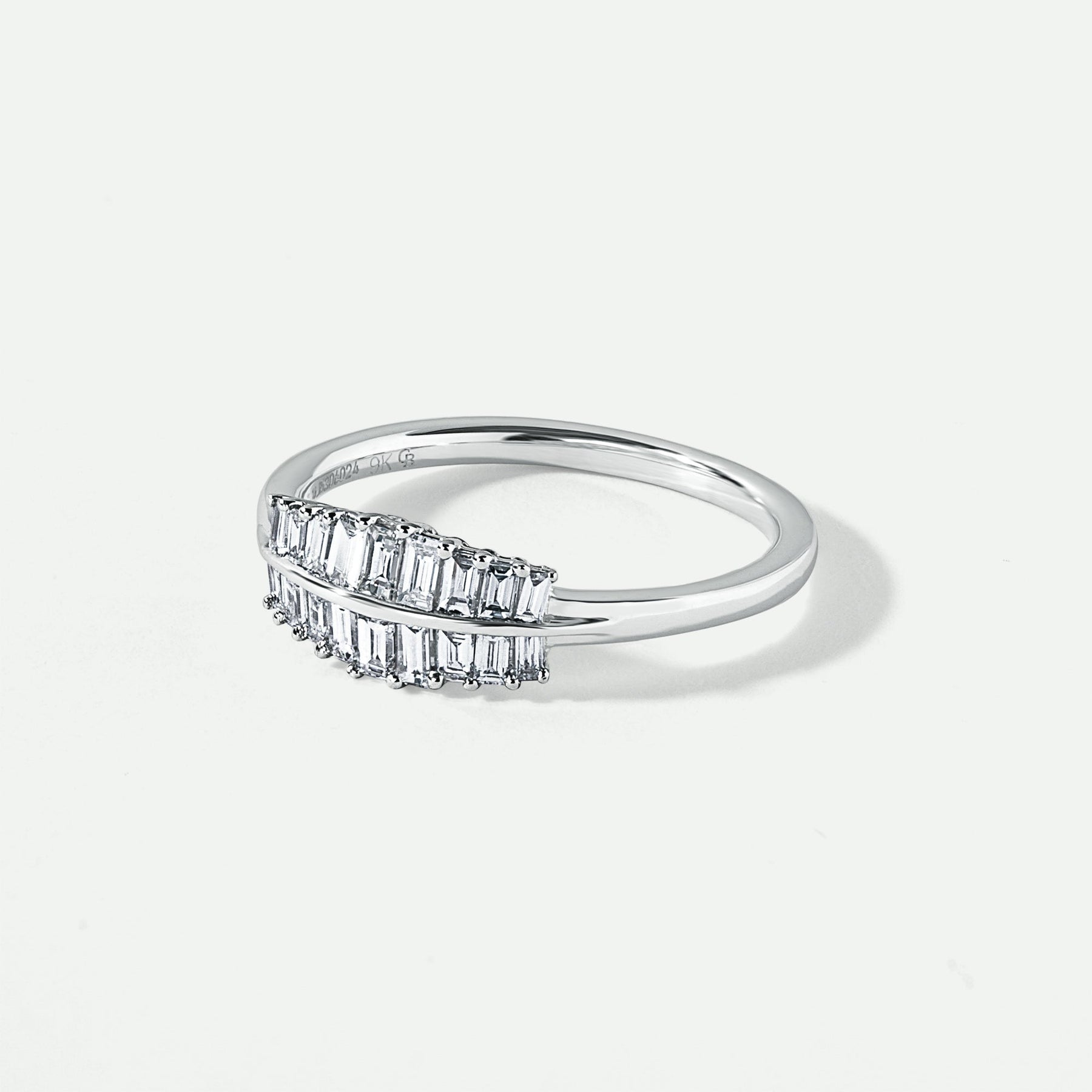 Our Aurora ring is crafted in 9ct solid white gold and adorned with a total of 0.40 carats of ethically sourced baguette-cut lab-grown diamonds set over two rows to create a stunning display of sparkle and sophistication. All lab grown diamonds on this piece are hand-selected and have a colour and clarity of F-G VS and come with IGI certificate.
