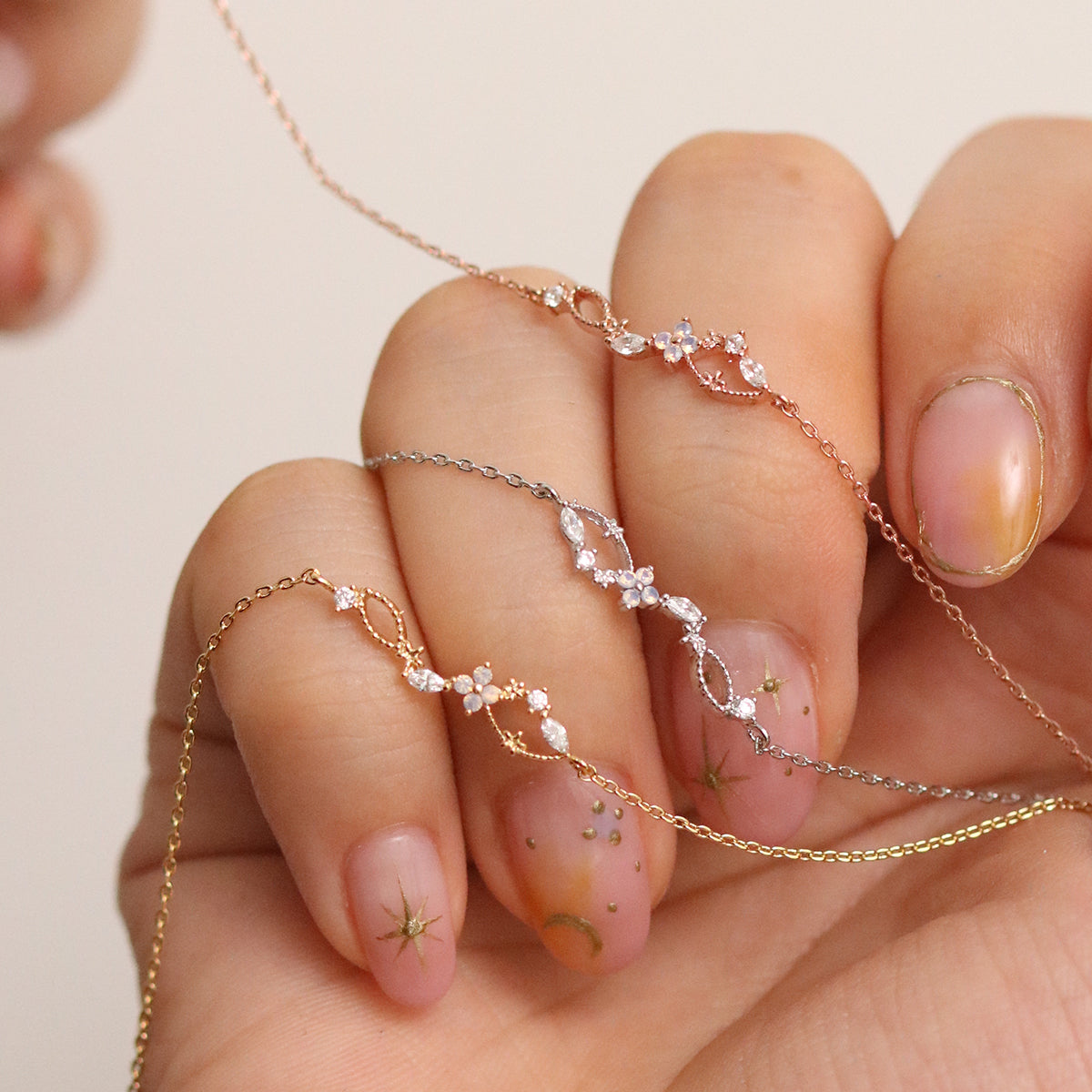 As an expert in the jewellery industry, I can confidently say that this Moonstone daisy cubic bracelet is the perfect balance of beauty and elegance. The moonstone and daisy cubic design is not only visually stunning, but also provides a delicate and feminine touch. Made with high-quality materials, this bracelet is sure to be a timeless addition to any jewellery collection.