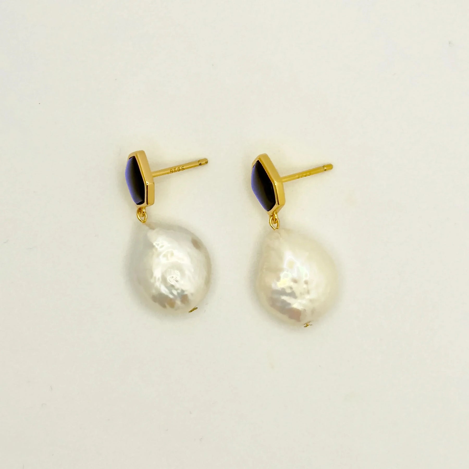 The Baroque Pearl Drop Earrings by Angel Barocco celebrate individuality and timeless beauty through the organic charm of natural pearls. Each earring features an irregular baroque freshwater pearl suspended from a geometric enamel stud, creating a perfect balance between modern design and classic femininity.