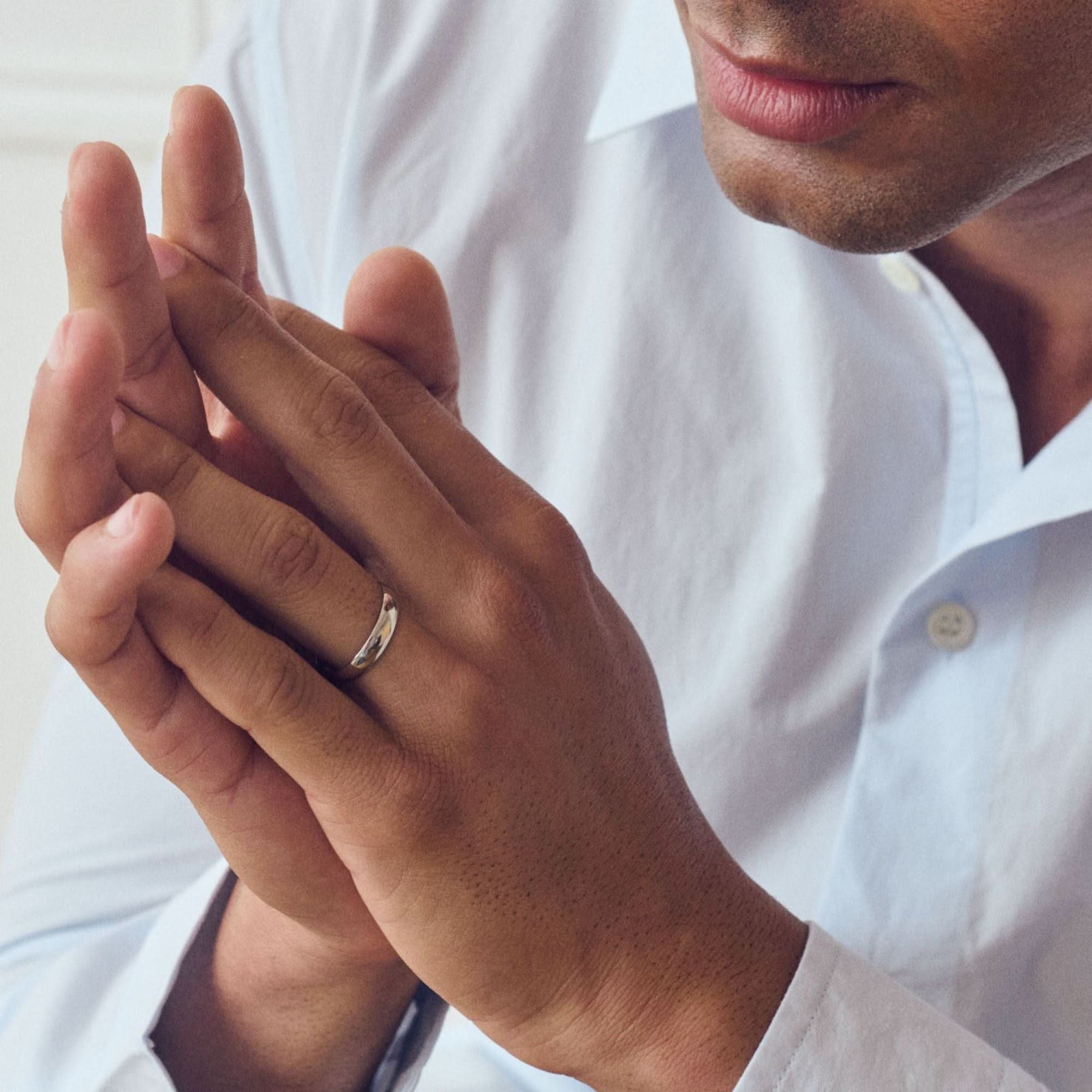 Classic 9ct White Gold D-Shape Wedding Band Ring - 4mm