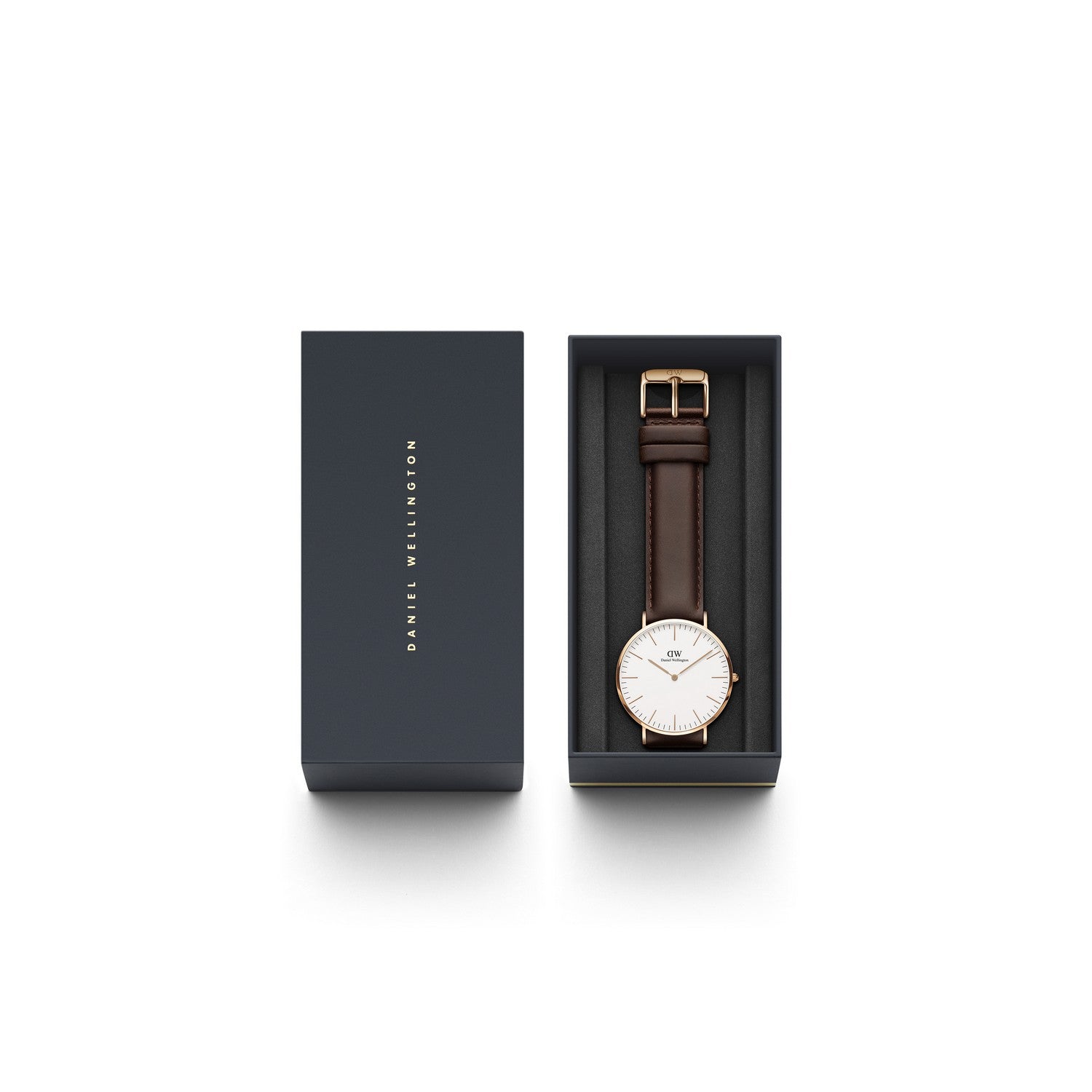 A dark-brown Bristol leather strap meets a slim rose-gold case and crisp white dial. The Classic Bristol is refined, understated, and ready for smart or casual looks.