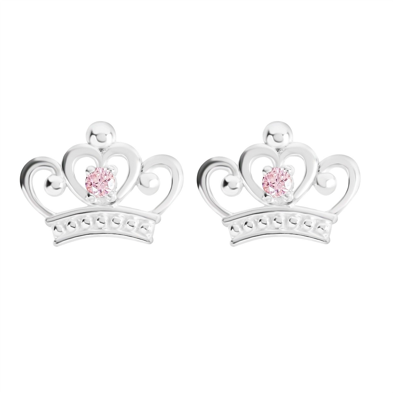 Disney Princess Sterling Silver 925 2Mm Pink Cz Crown Stud With Double Notch Post Earring E901717SZPL.PH