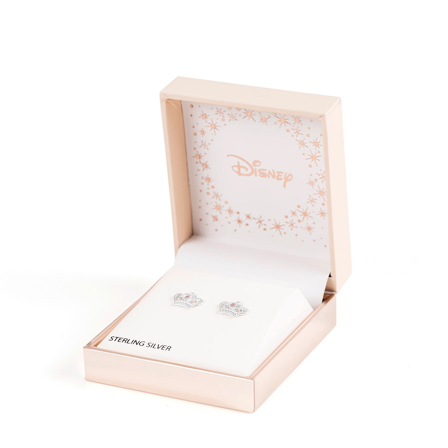 Disney Princess Sterling Silver 2mm Pink Zirconia Crown Stud With Double Notch Post Earring E901717SZPL PH