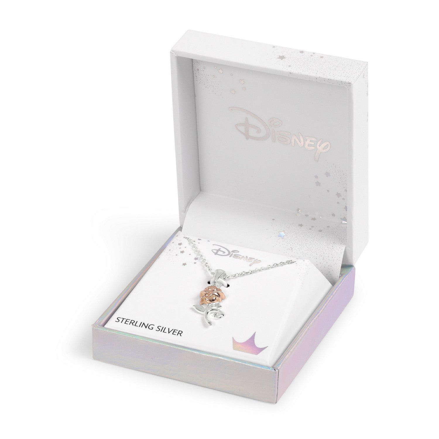 Disney Princess Sterling Silver 925 Tt Plt Beauty And The Beast Rose W/18" Chain Pendant C902727TL-P.PH