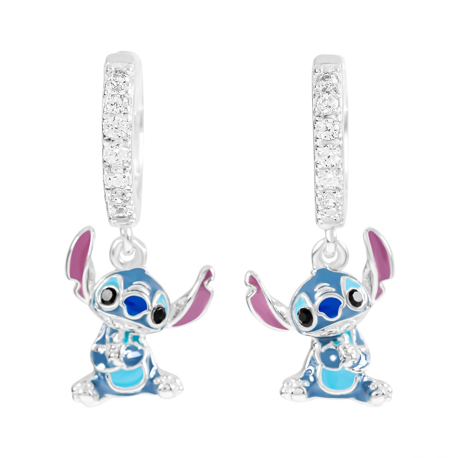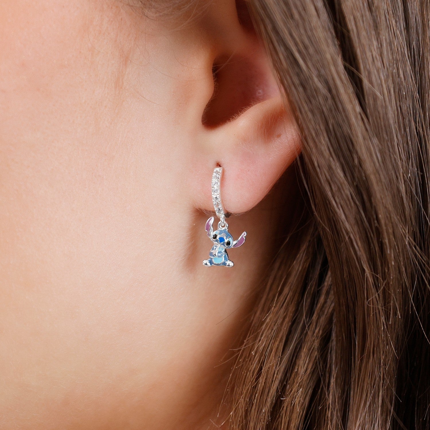 Disney Sterling Silver Si ing Stitch Charm Hoop Earrings E908135SZML PH