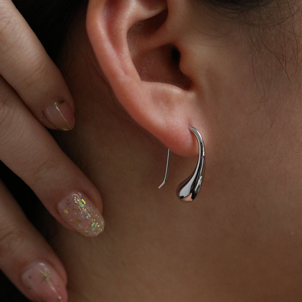 These solid 925 sterling silver tear drop earrings hook perfectly into the ear. Hand designed to give off beautiful reflections. Also available in a smaller size here.