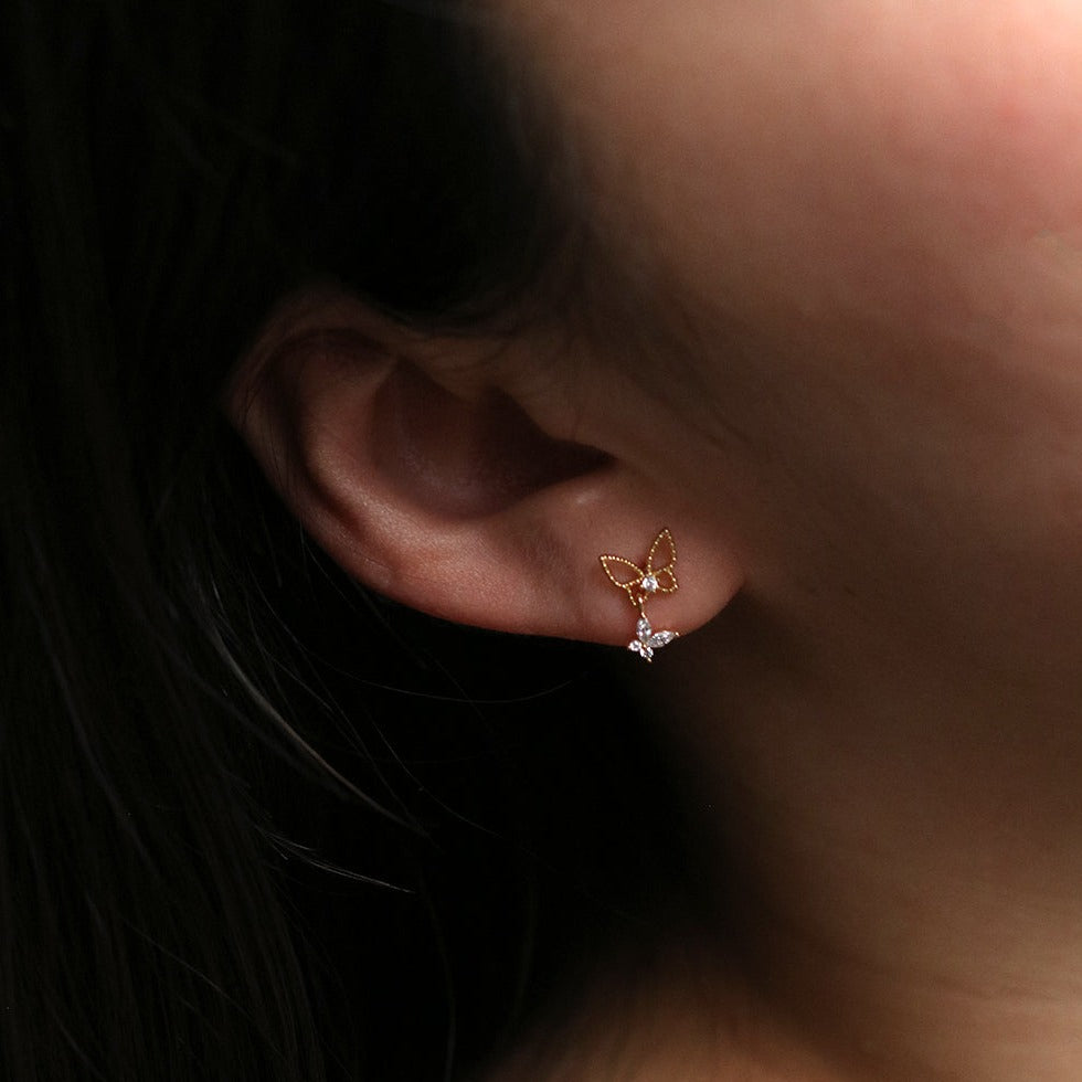 These Twin butterfly dangle earrings are perfect for anyone who loves dainty jewellery. The mother and child butterfly design showcasing innocence and joy, making them perfect for everyday wear. Lightweight and comfortable, these earrings are a subtle way to show your love.