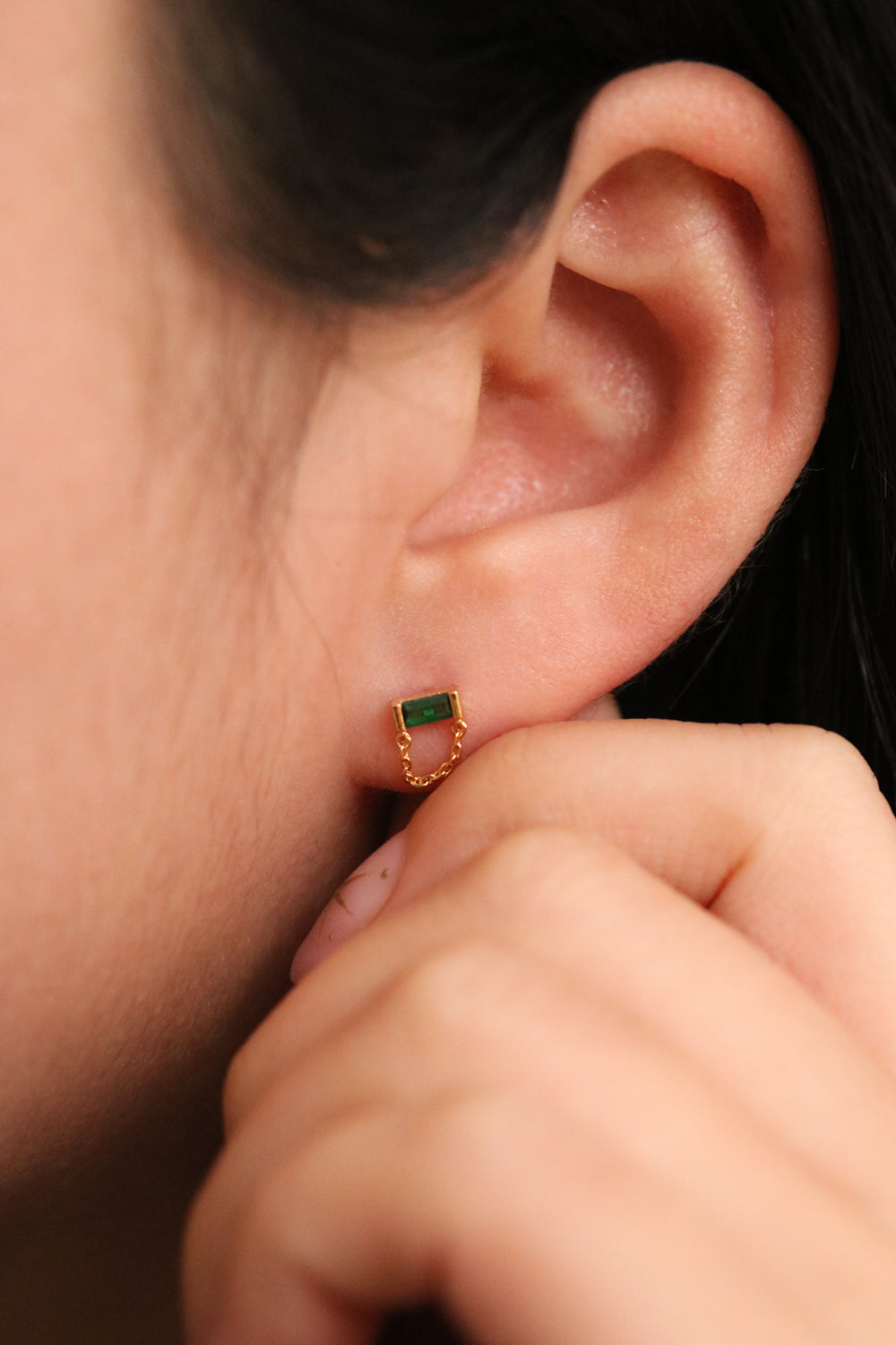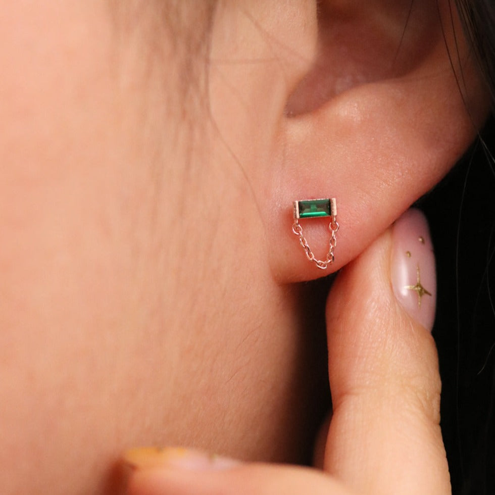 Elevate any outfit with these stunning White Chandelier Chain Dangle Earrings. The chandelier-like design showcases sparkling Green Onyx stud earrings with a delicate white chain drop, adding a touch of elegance. Expertly crafted and versatile, these earrings are a must-have for any jewellery collection. Available in White topaz here.