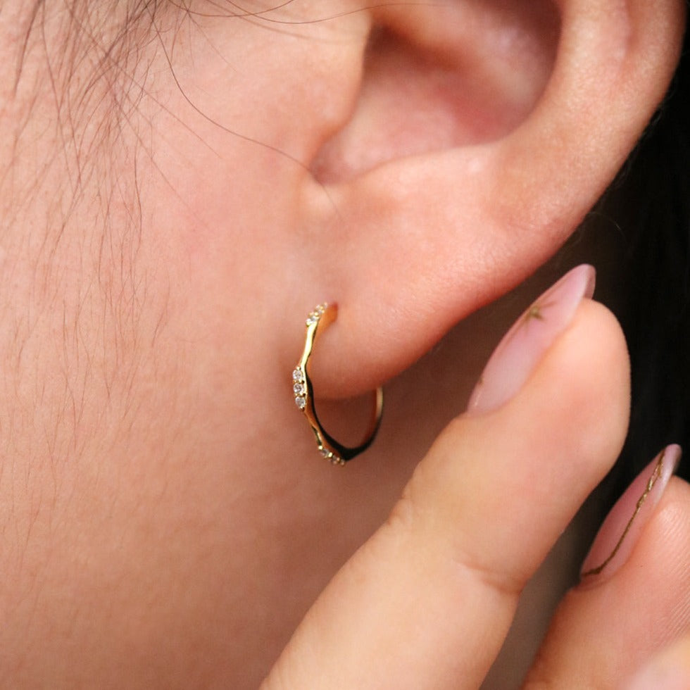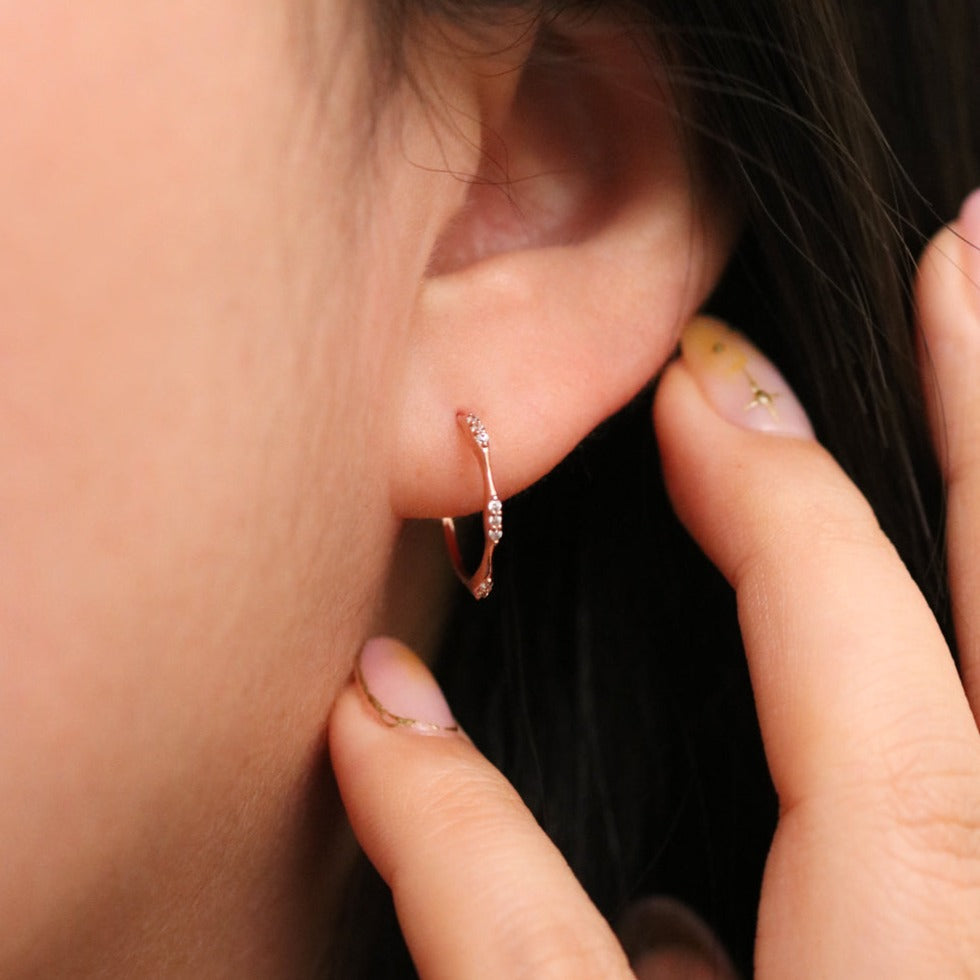 Elevate your style with these Simple Sparkle Earrings. With a thin semi-hoop design and small cubic zirconia stones, these earrings add just the right amount of sparkle to any outfit. Crafted with precision and sophistication, these earrings are a must-have for any jewelry collection.