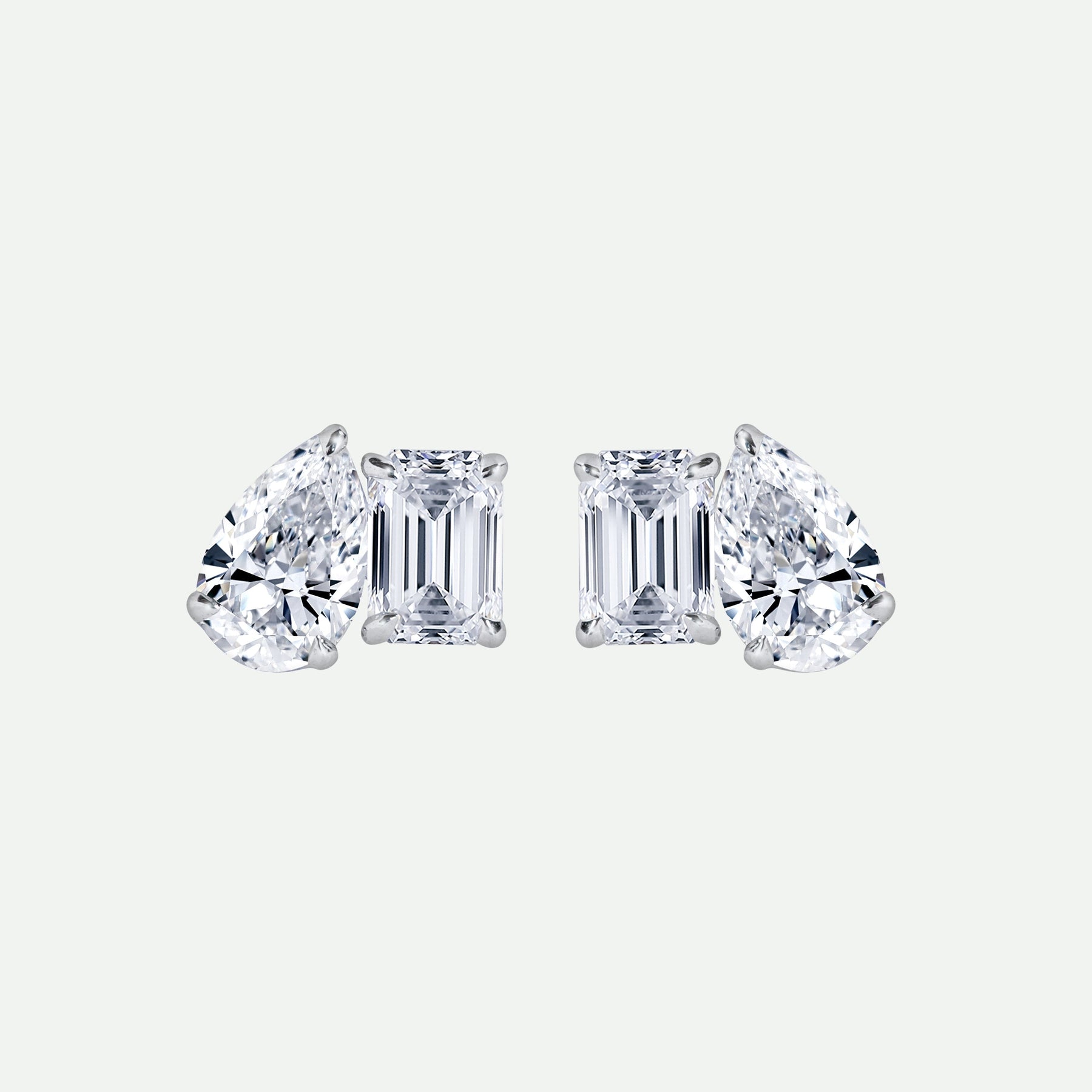 Our Elise earrings are exquisitely crafted in 9 carat solid gold and set with a total of 0.80ct shimmering lab grown diamonds. Featuring a unique Toi Et Moi design, the Elise Earrings showcase a stunning combination of pear and emerald-cut diamonds which are adding a touch of glamour to any ensemble. Complete the look with the matching Elise Necklace. All lab grown diamonds on this piece are hand-selected and have a colour and clarity of F-G VS and come with IGI certificate.