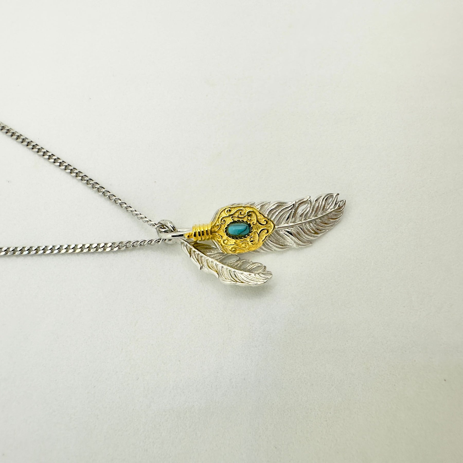 Inspired by the grace of a feather drifting in the wind, this necklace embodies a journey toward peace and authenticity. The turquoise centre evokes the calm of open skies — a reminder to stay grounded while you soar.