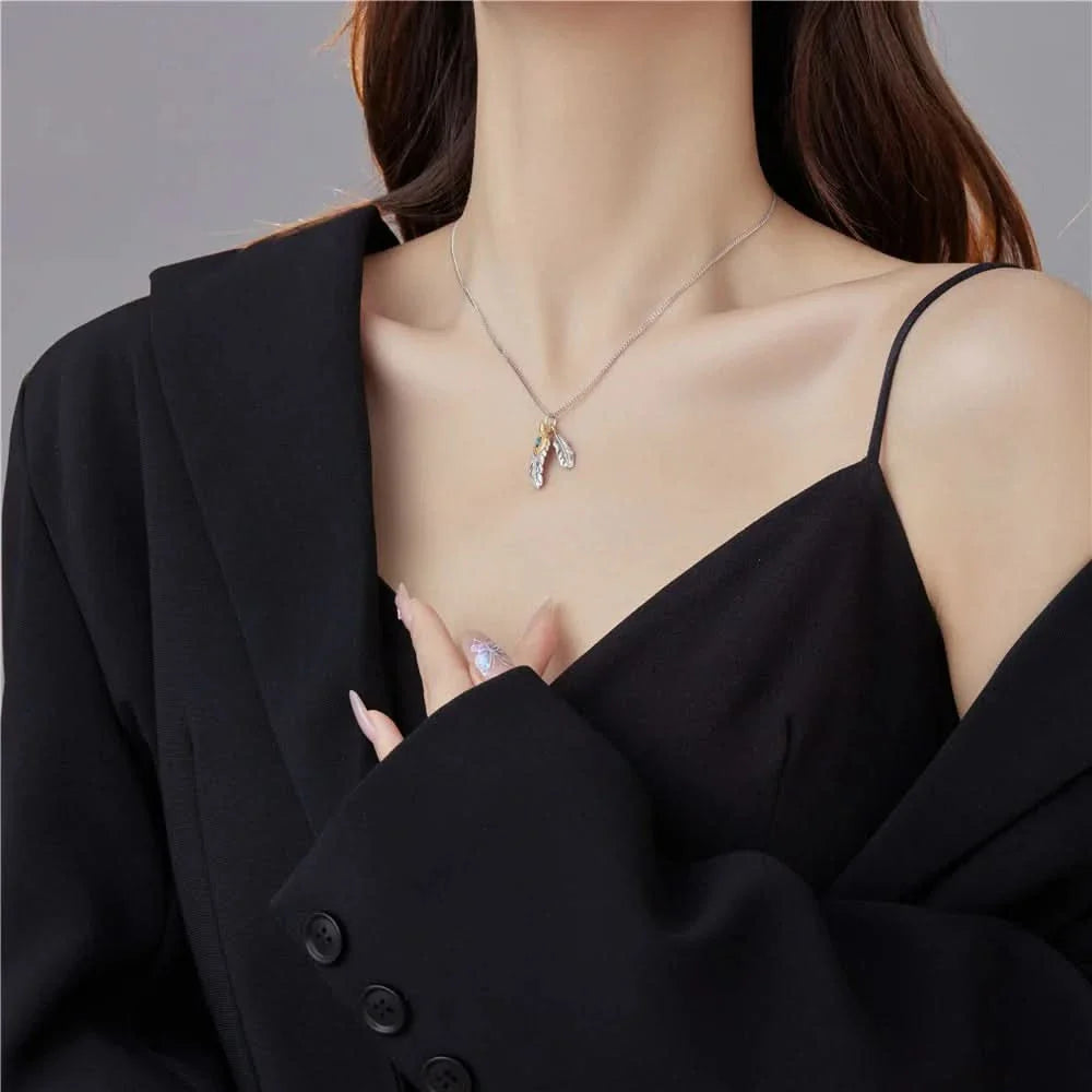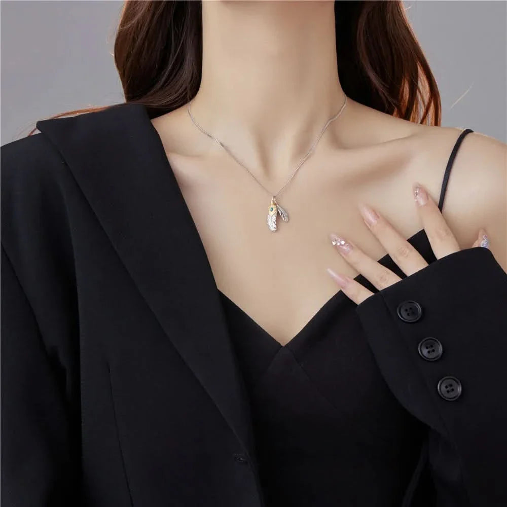The Feather Charm Turquoise Necklace by Angel Barocco beautifully merges bohemian spirit with refined elegance. Crafted from S925 sterling silver, the necklace features a delicately carved feather charm paired with a vivid turquoise stone, symbolising freedom, balance, and protection.