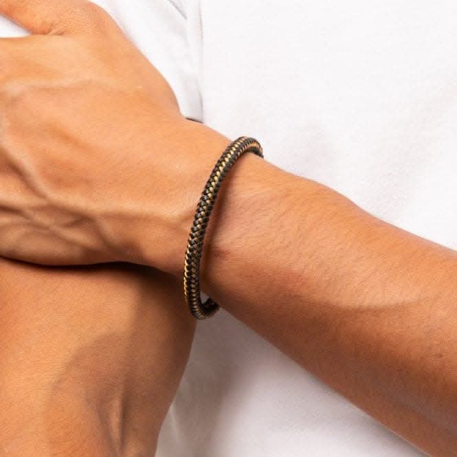 Designed to capture the essence of classic sophistication while embracing modern aesthetics, this bracelet is crafted in stainless steel and aesthetically weaved in black and yellow gold plated wire. Why not stack on the wrist with other Fred Bennett bracelets to personalise your style!