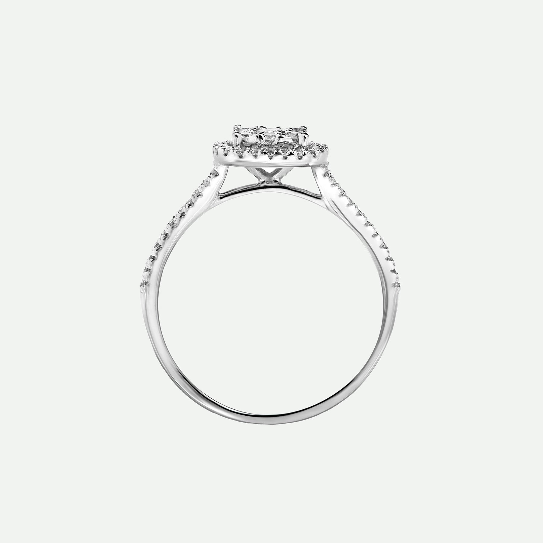 Our Gemma ring is expertly crafted in 9 carat white gold and set with a cluster of brilliant lab grown diamonds. Framed by a halo of pavé set diamonds, this luxurious engagement ring has a total diamond weight of 0.52ct. Embellished with diamond set spilt shoulders for maximum sparkle, the Gemma ring is a wonderful way to express your love.