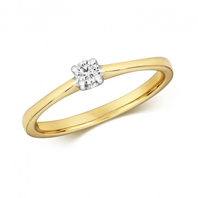 Diamond Jewellery 9K Yellow Gold 0.10CT Diamond 4 Claw Solitaire Ring RD608