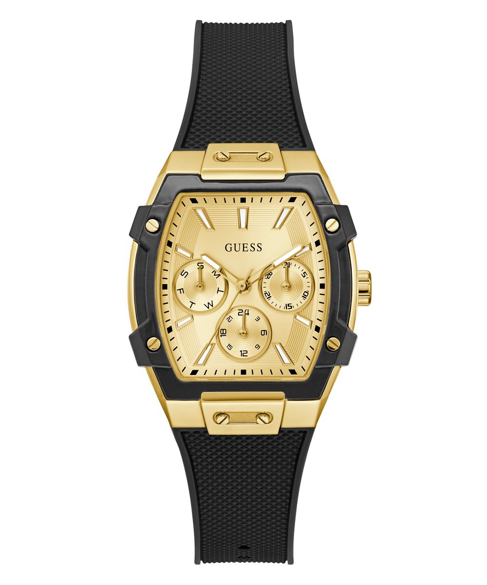 Guess Women’s 35×42mm Gold-Tone & Black Multifunction Silicone Watch GW0945L2