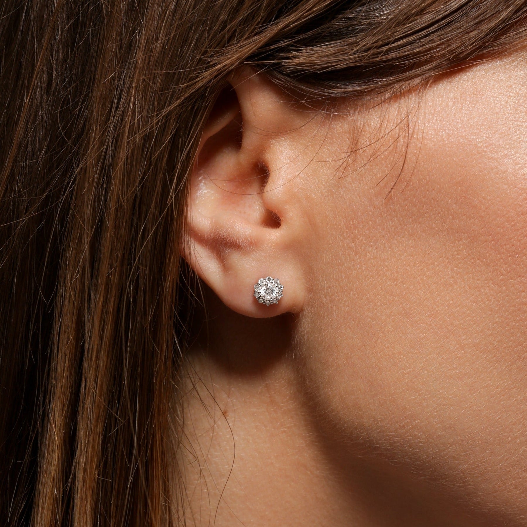 Our Hazel earrings beautifully crafted in 9ct white gold and set with 0.57ct of brilliant lab grown diamonds in a charming cluster design.