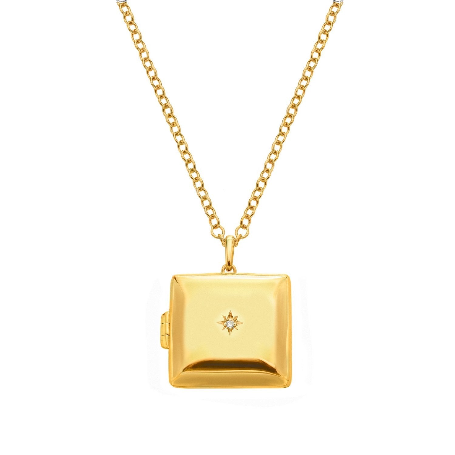 Keep your treasured memories safe with a classic Yellow Gold Plate on Sterling Silver square locket. Featuring a real diamond, this locket measures a 20mm x 20mm on a 40 - 45cm belcher chain. Finished in 18ct Gold Plated Sterling Silver, Diamond for a polished, wearable style that works day or night.