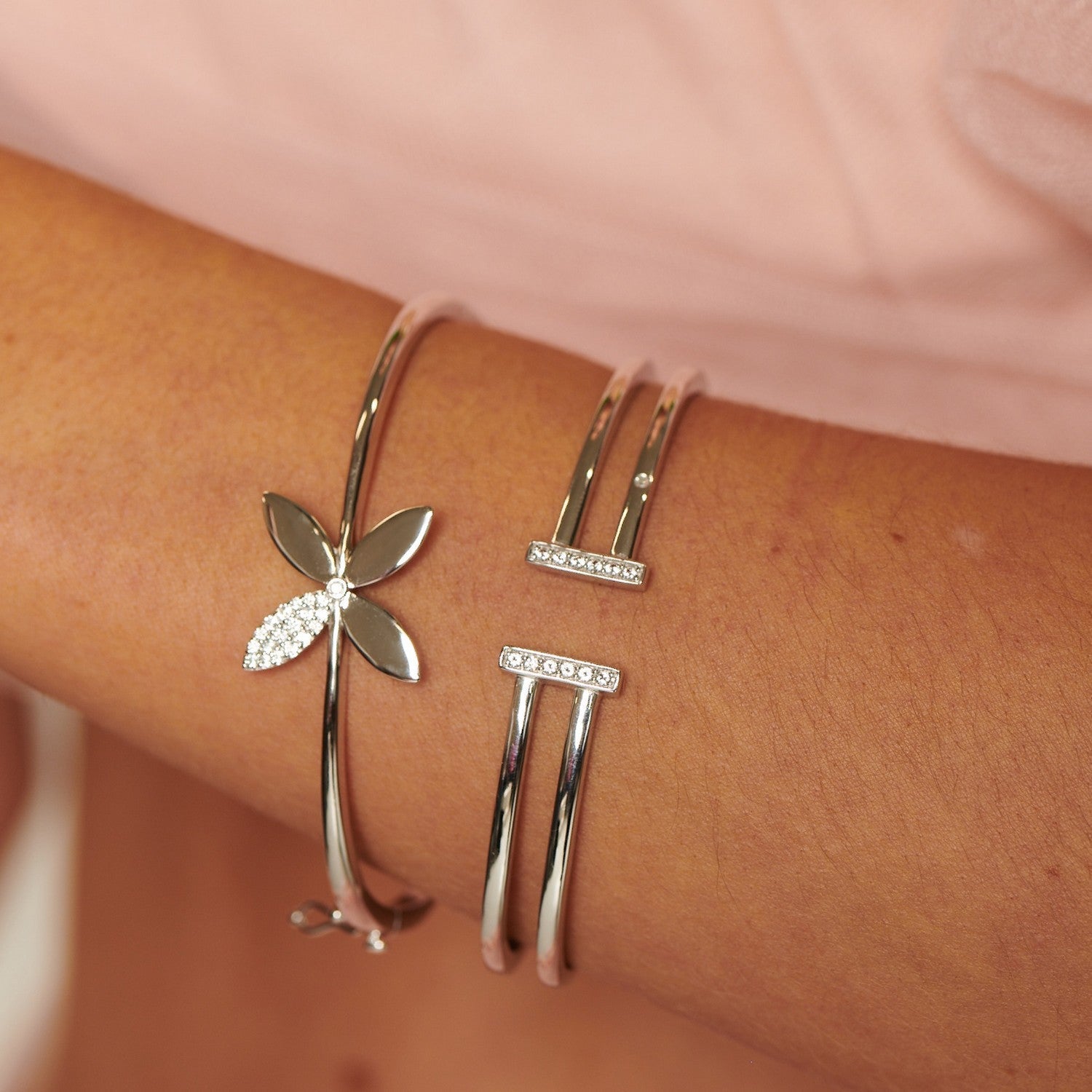 Hot Diamonds Sterling Silver Double T Bar Bangle DC230
