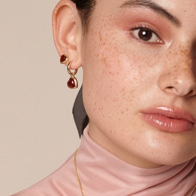 HD X Gemstones 18ct Gold Plated Sterling Silver Heart Red Agate Earrings DE797