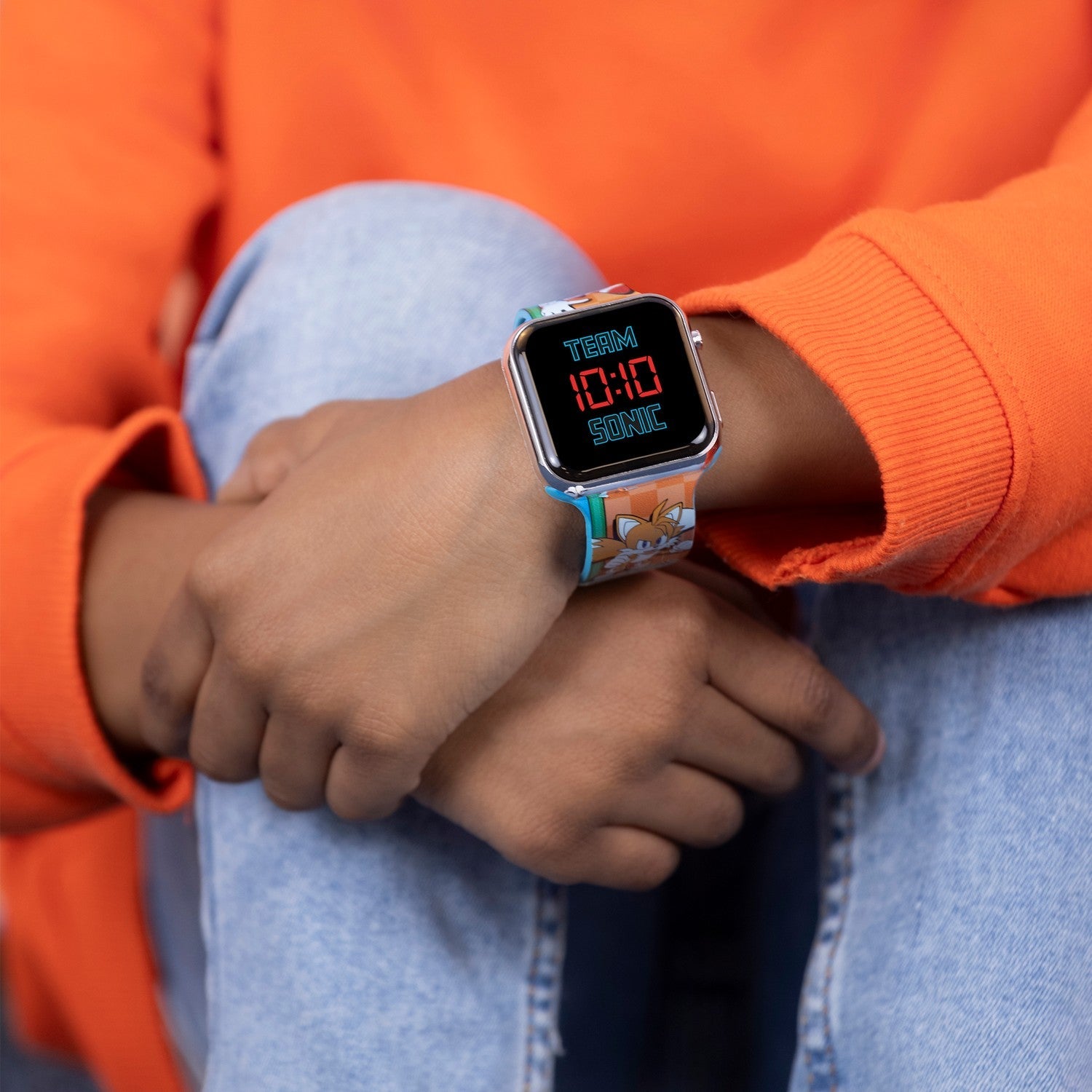 Kids Film Cartoon Sonic, Tails Knuckles Printed Strap Led Orange Watch SNC4322M