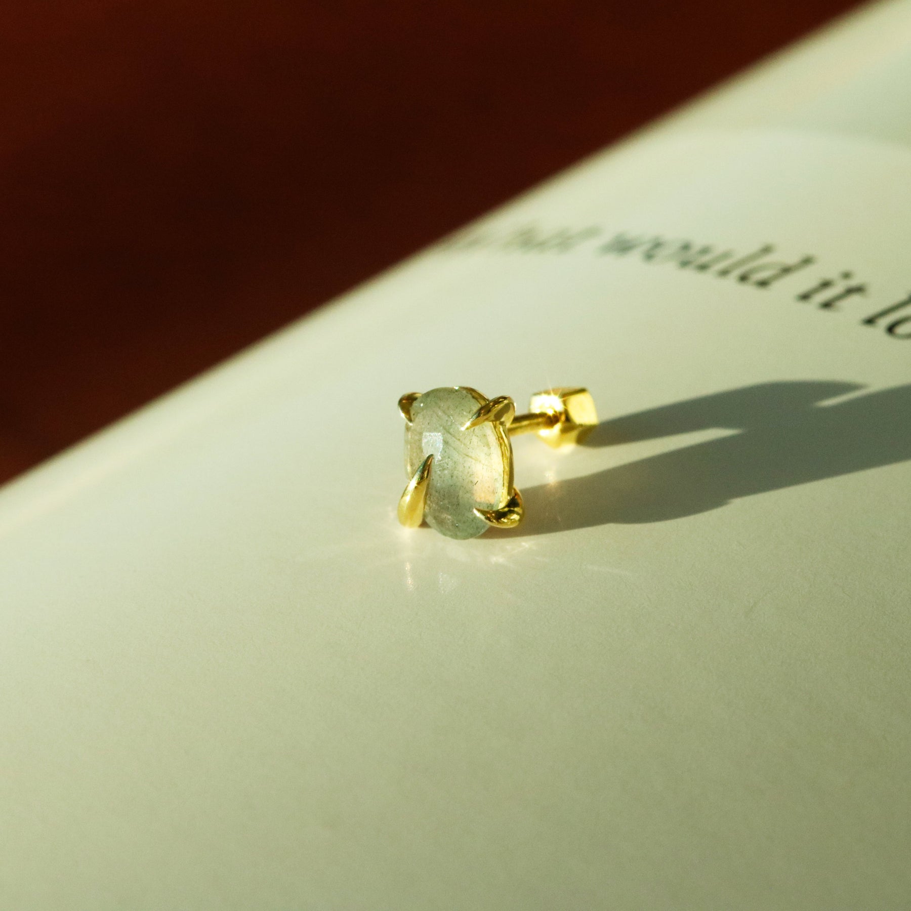 The Labradorite barbell is an ideal piece for those who want a traditional yet classy look to suit their sophisticated sense of style. The Labradorite is the stunning centre piece held in place traditionally with four prongs. With some of the prongs elongated to give it an almost out of this world look.