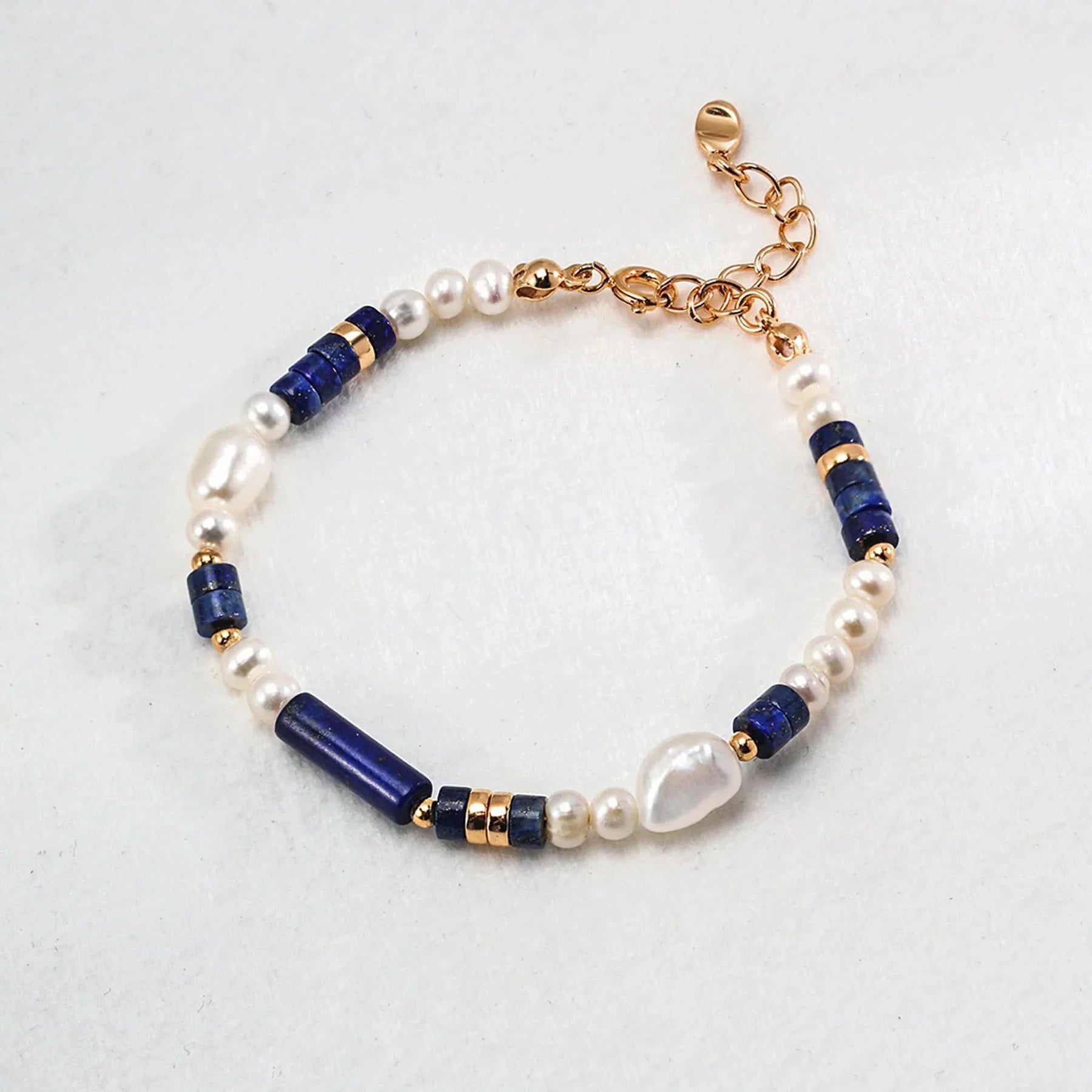 This exquisite Lapis lazuli Baroque pearl bracelet adds a touch of sophistication and elegance to any outfit. The unique Baroque pearls and the deep blue hue of lapis lazuli make for a stunning combination. Elevate your style with this one-of-a-kind piece!