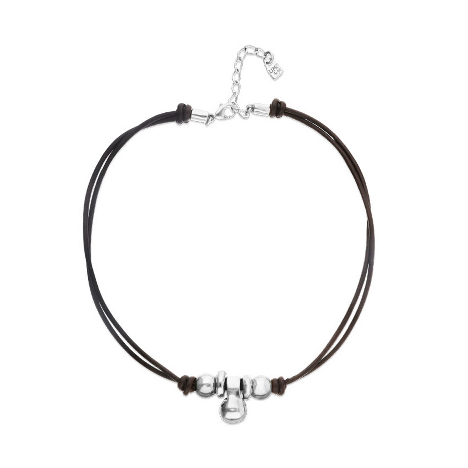 Leather Three Sheres Sterling Silver Plated Necklace COL2064MARMTL crafted with alloy / silver plated / leather. Key details include Alloy / Silver Plated / Leather, approx. 19.4g.