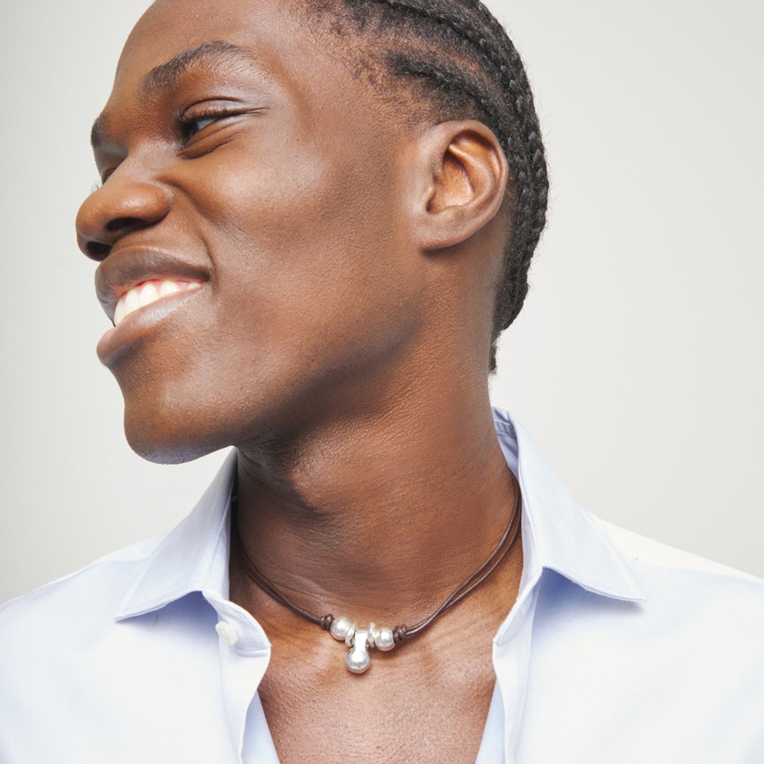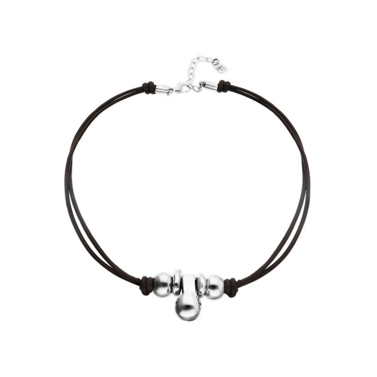 - 1 x Leather Three Sterling Silveralloy Plated Balls Necklace COL2064MARMTL