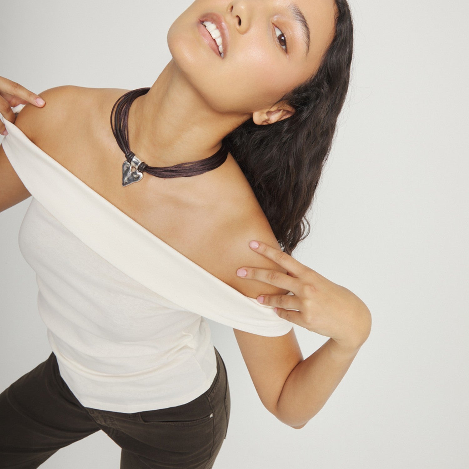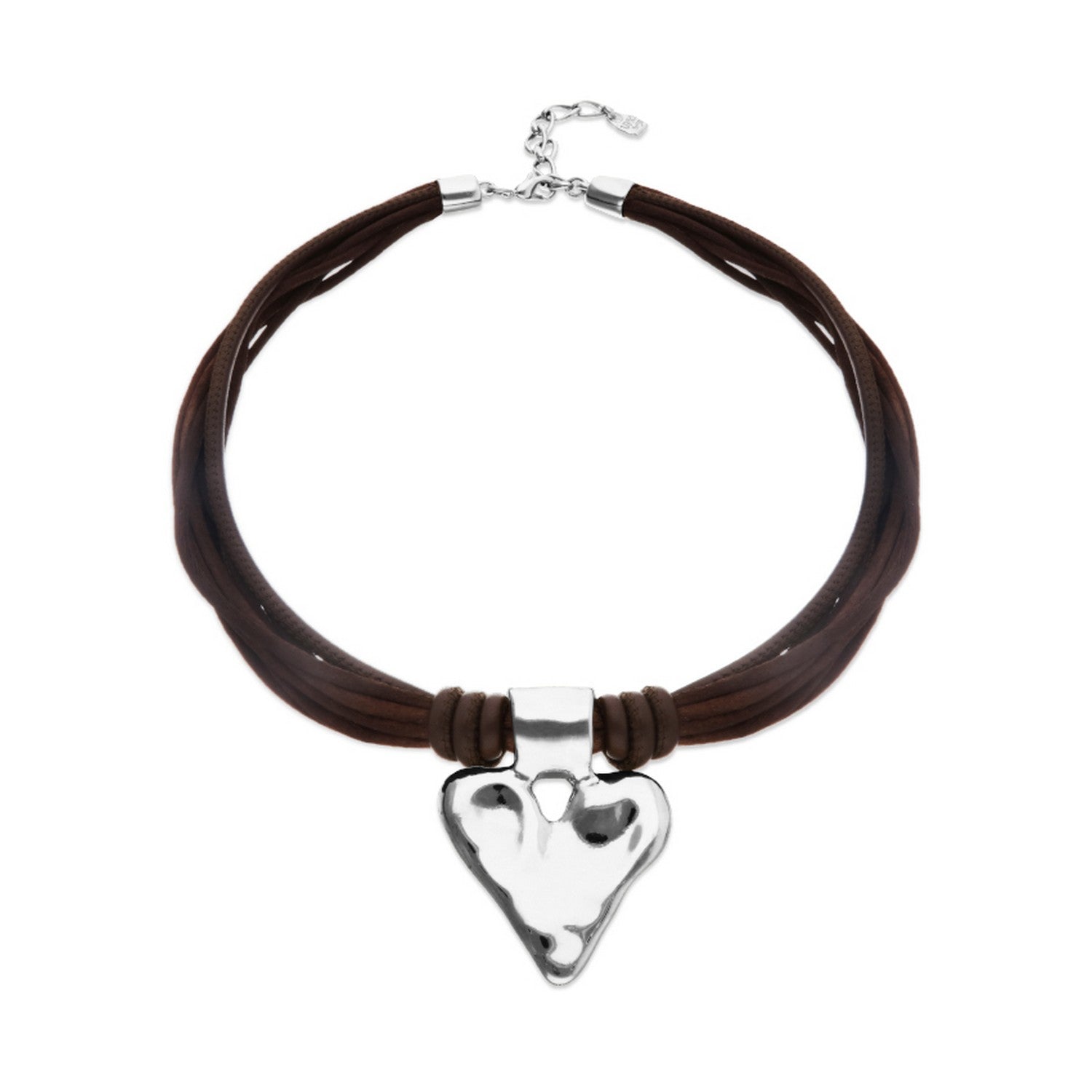 Mixed Dark Brown Silk And Leather Thread Sterling Silver Heart Detail Necklace COL2066MARMTL crafted with alloy / silver plated / leather. Key details include Alloy / Silver Plated / Leather, approx. 40.6g.
