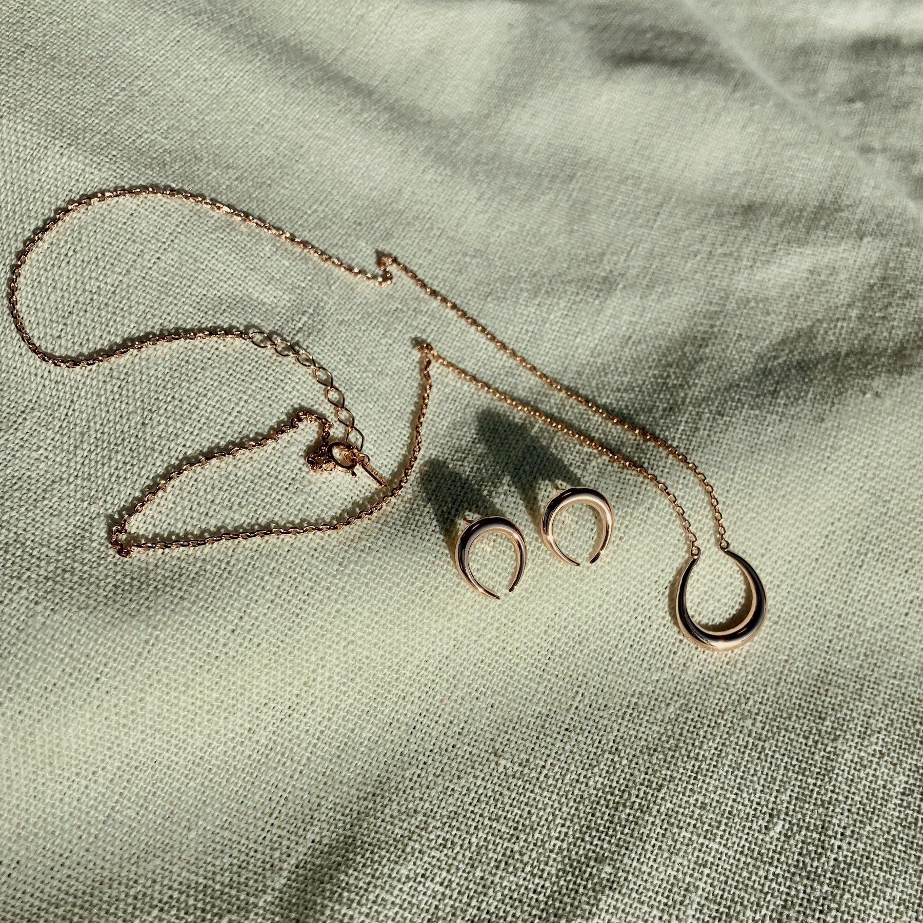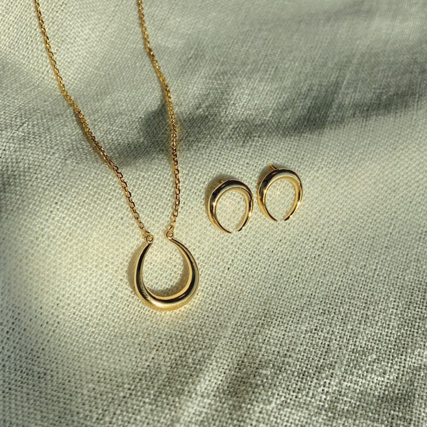 A very lovely, bold piece. Reminiscent of a horse shoe, which is known for bringing luck. Exquisitely designed, a bold statement to complete an evening outfit. Also comes as a pair of earrings to complete the set.