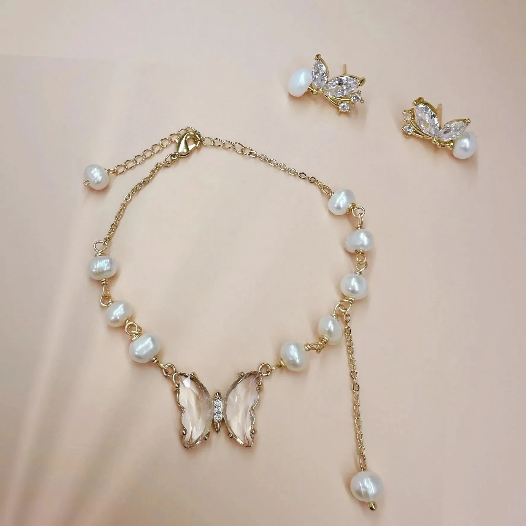 Pearl with Butterfly Crystal Gold Bracelet
