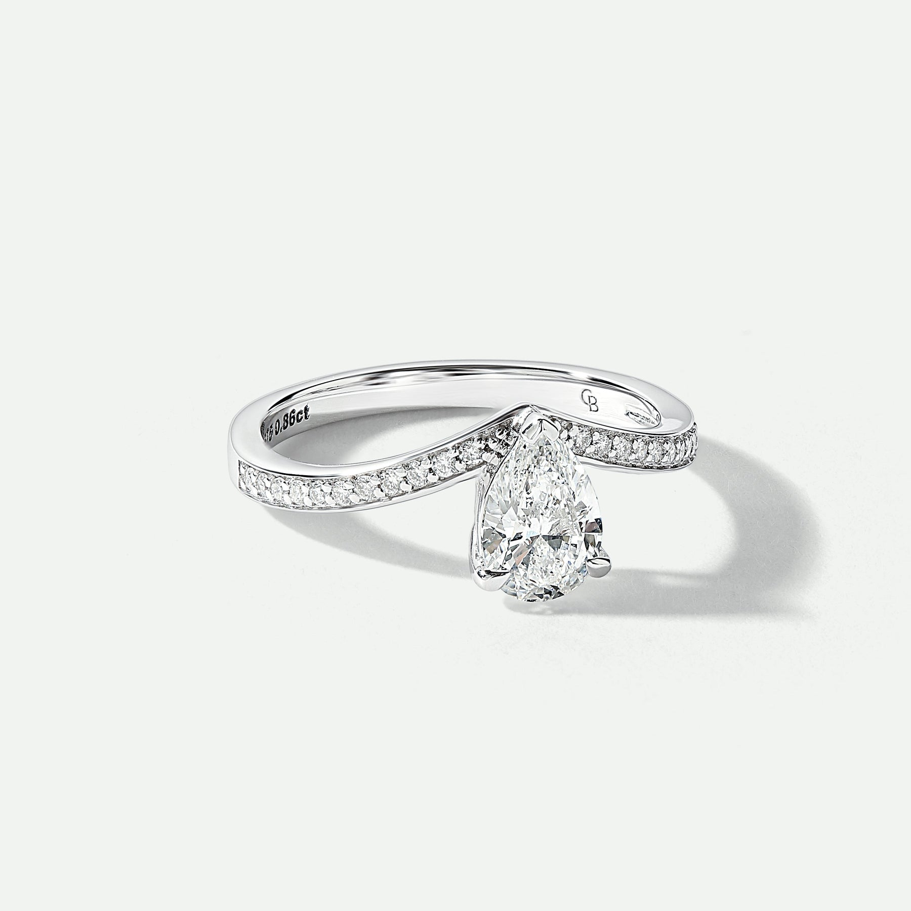 The stunning Remi engagement ring is set with 0.86ct of spectacular lab grown diamonds. The contoured V setting nestles a striking 0.75ct G VS2 pear cut centre stone. Elegant in its craftsmanship the Remi ring is unique and timeless.