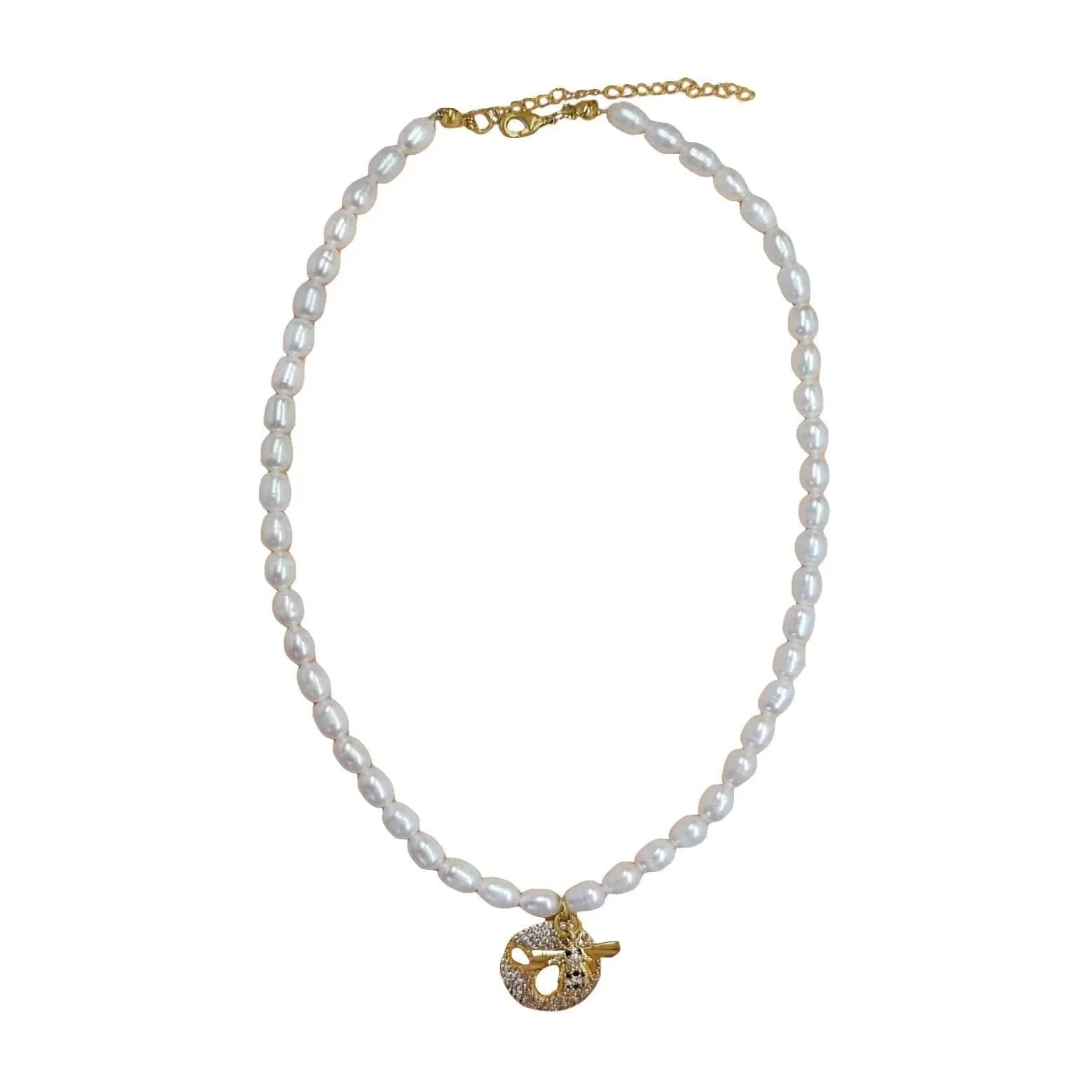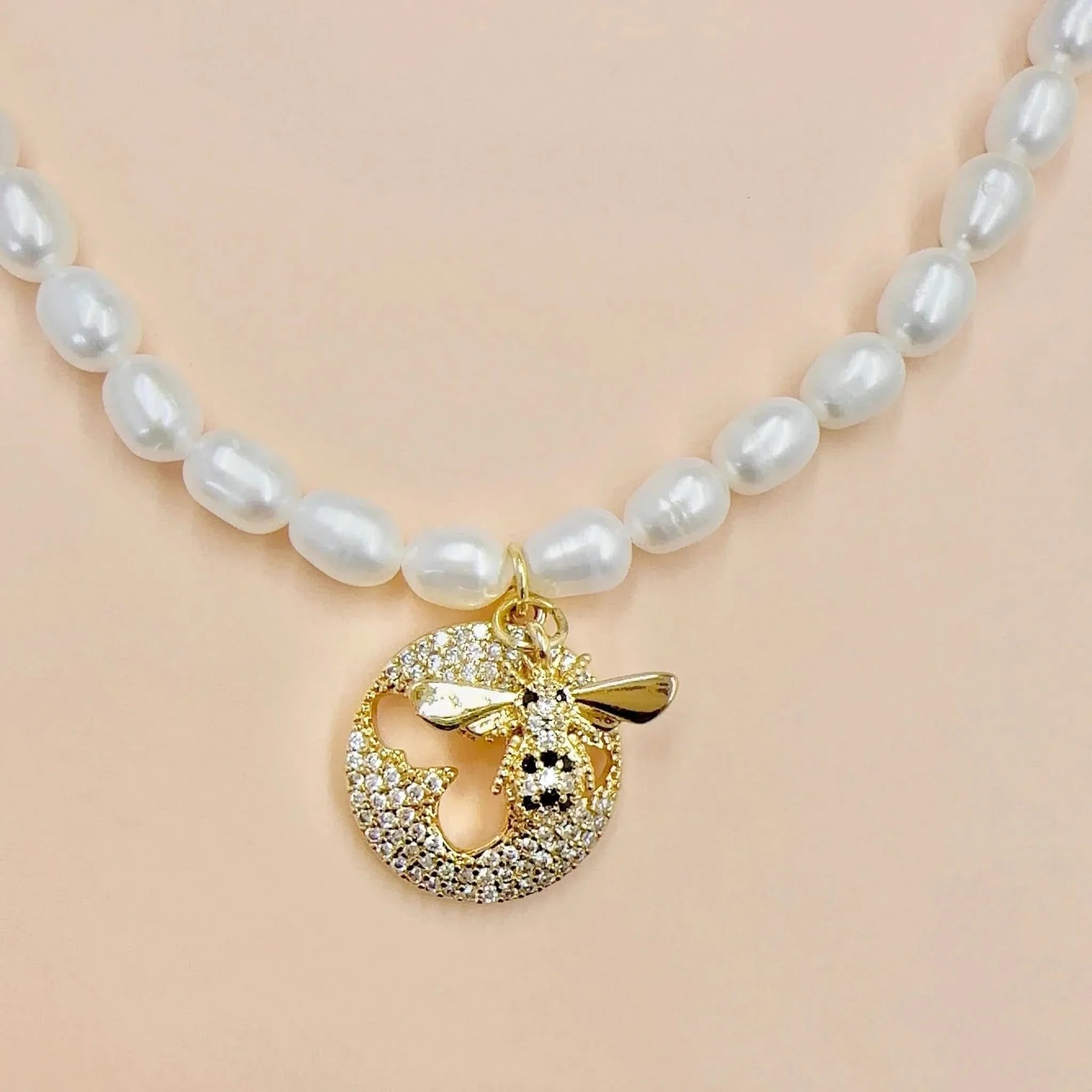 Seeds Pearl Choker Necklace with Bee pendant