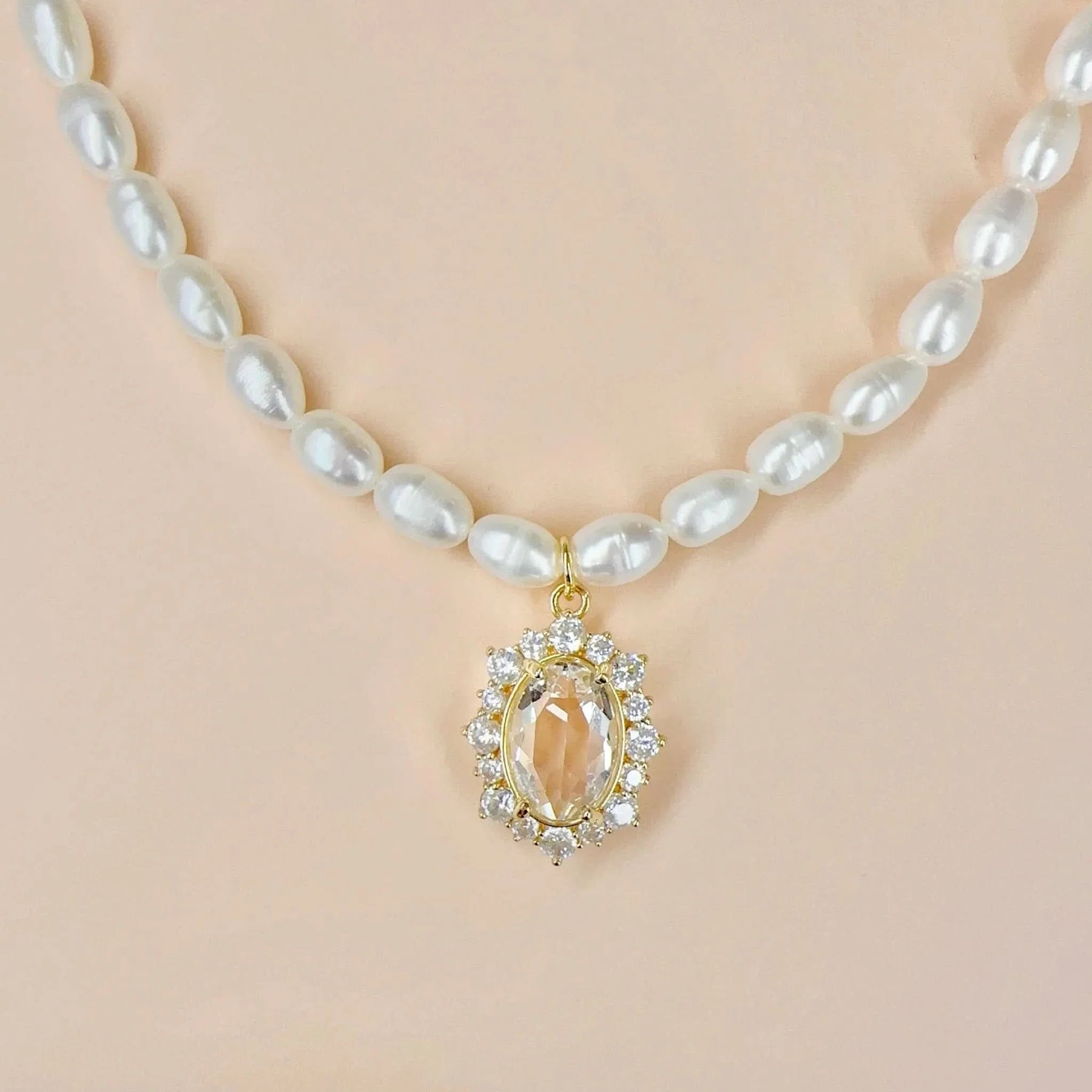 Elevate your style with the timeless beauty of our Freshwater Pearl Choker Necklace, featuring a radiant crystal gemstone pendant in three exquisite colors. Designed for those who appreciate elegance and sophistication, this necklace blends classic pearls with dazzling brilliance, making it a perfect statement piece for any occasion.