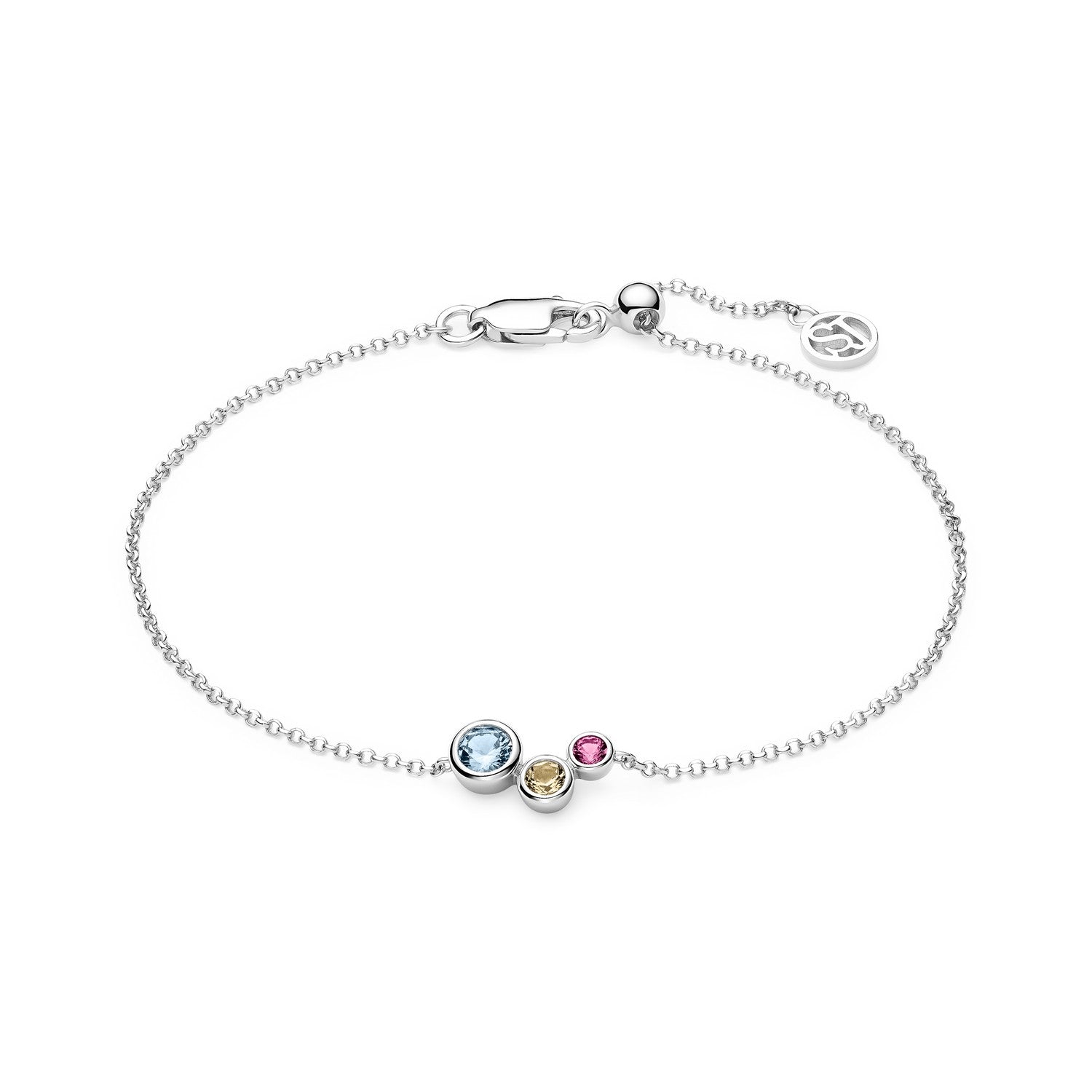 Bracelet made of Rhodium 925 Sterling Silver, with a polished surface and handset with facet cut multicoloured zirconia.