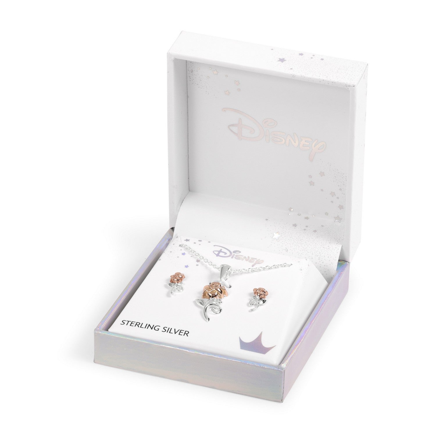 Silver 15"+2" Ext Beauty And The Beast Rose Pendant & Stud Earrings Set S901030UL.PH