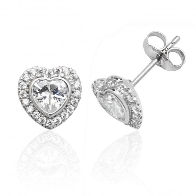 Silver & Co Luxury Silver Halo Heart CZ Stud Earrings with Bezel Setting - SEG0017CZ