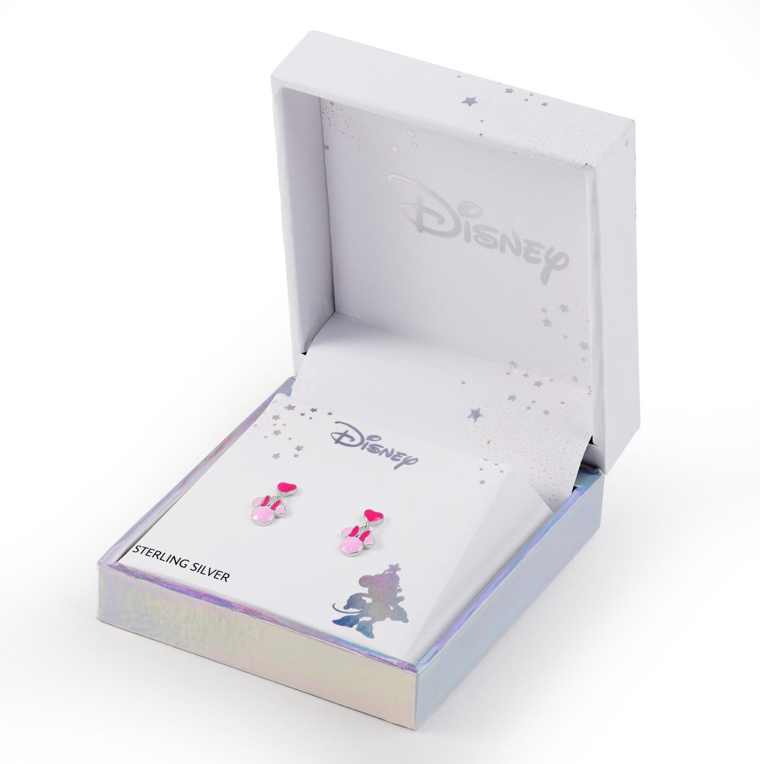 Silver Minnie Mouse Pink Enamel Fill Love Heart Drop Earrings ES00111SL.PH