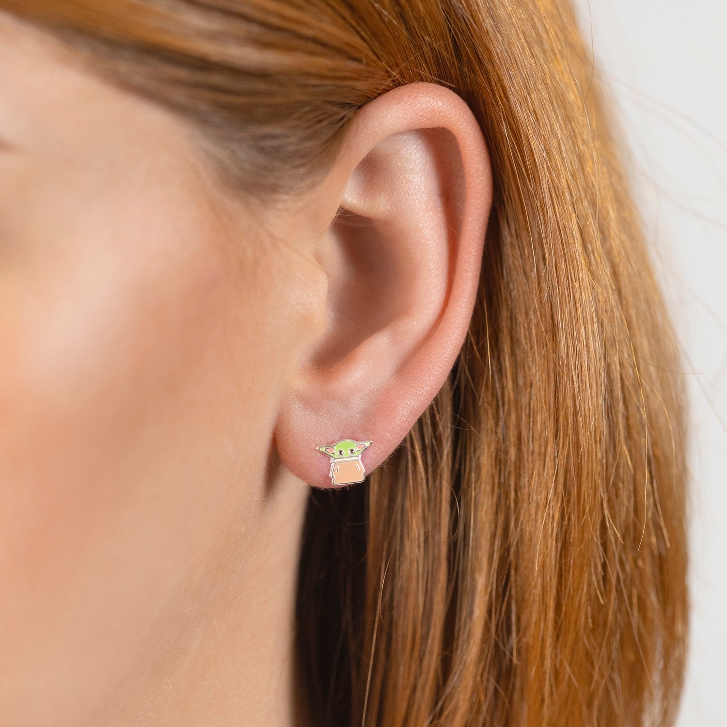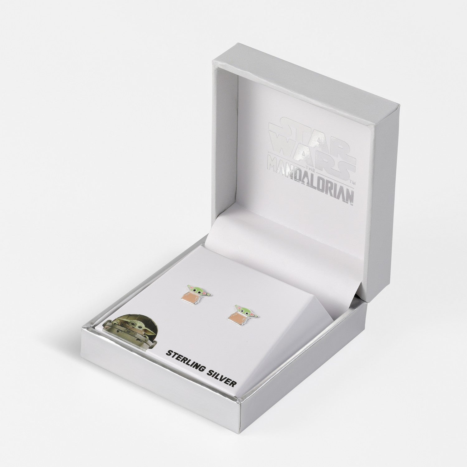 Star Wars Sterling Silver The Mandalorian Stamp Stud Enamel Filled Grogu Earrings E906538SL PH