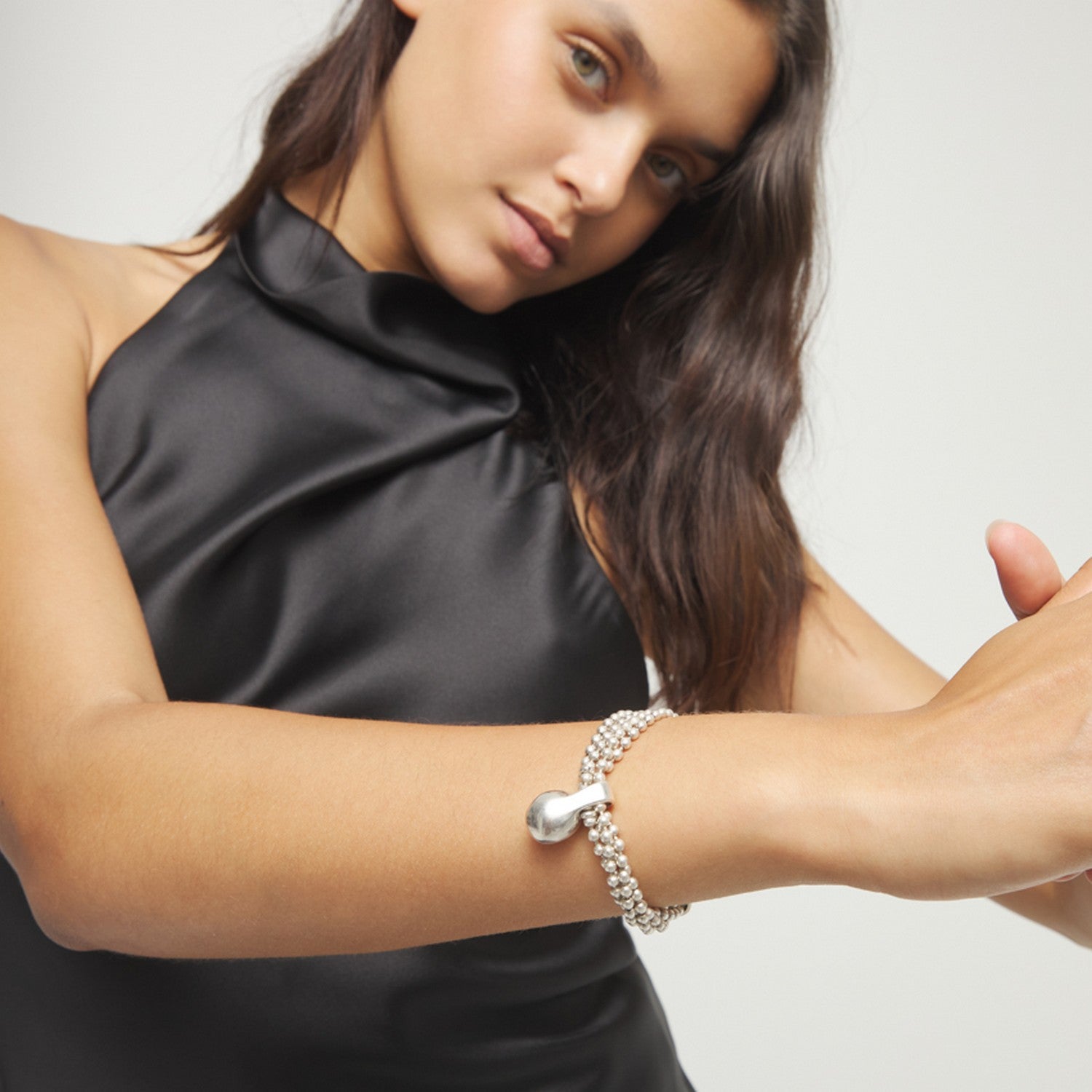 Sterling Silver Alloy Silver Threads And Big Shaped Ball Bracelet PUL2607MTL000 crafted with alloy / silver plated. Key details include Alloy / Silver Plated, approx. 35.1g.