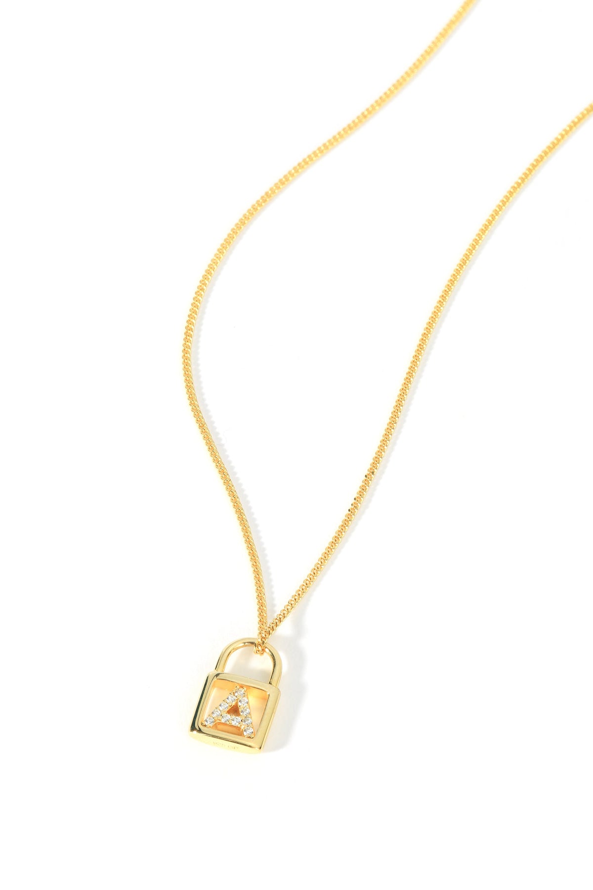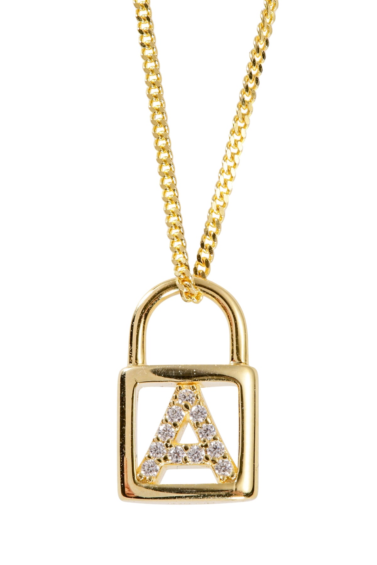 Sterling Silver Gold Plated Cubic Zirconia Padlock Initial Pendant