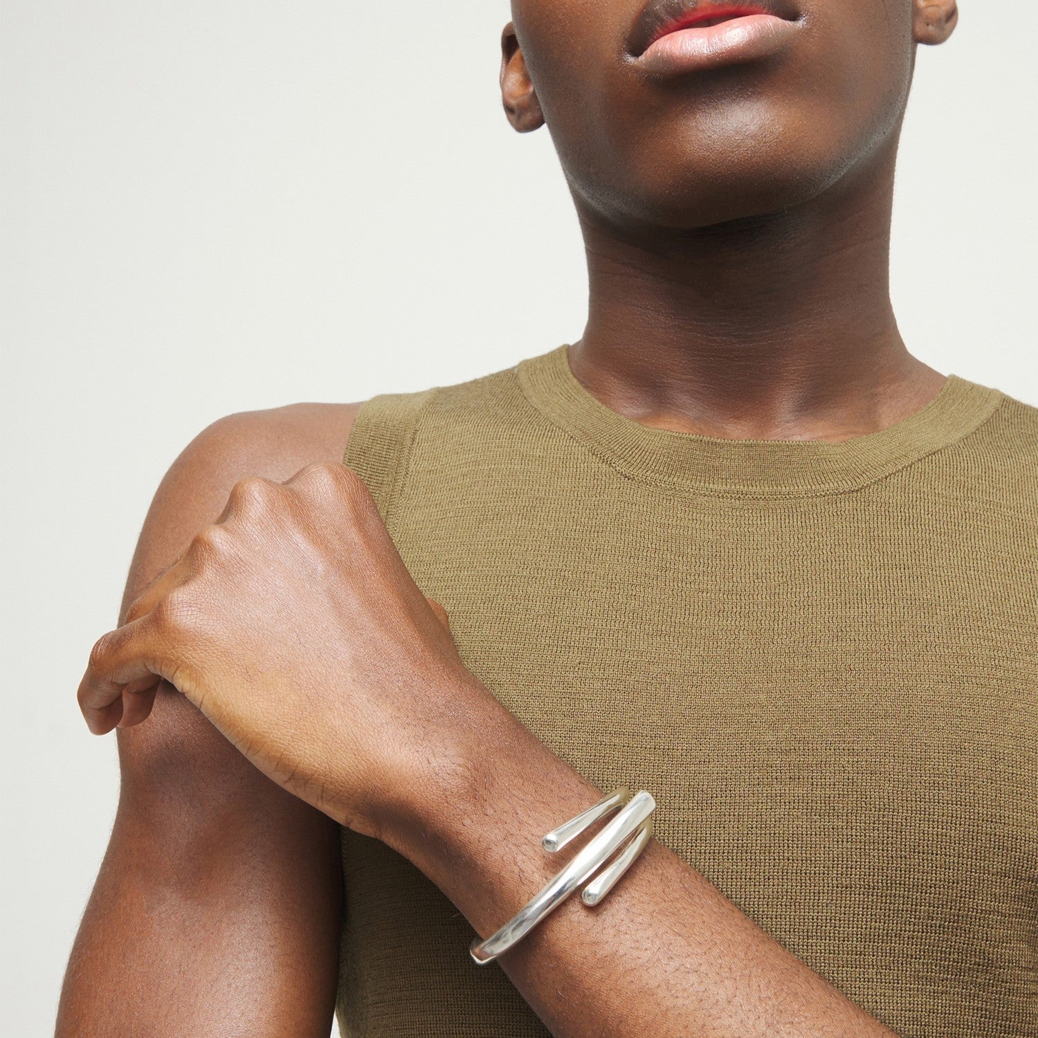 Sterling Silver Plated Three Intertwined Organic Shapes Bangle PUL2631MTL000 crafted with alloy / silver plated. Key details include Alloy / Silver Plated, approx. 68.5g.