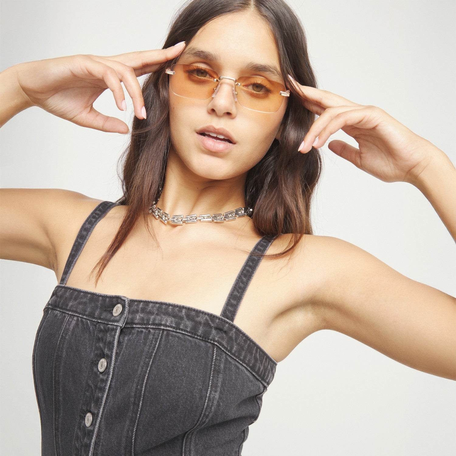 Sterling Silver Plated Square Links Necklace COL2065MTL000 crafted with alloy / silver plated. Key details include Alloy / Silver Plated, approx. 81g.